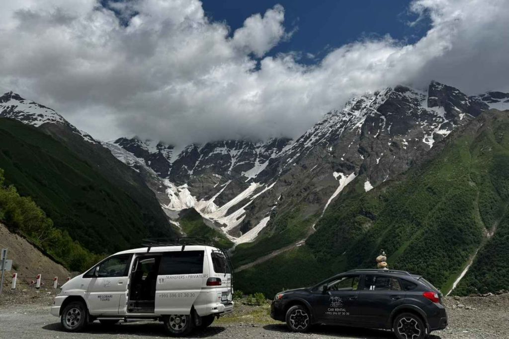 쿠타이시에서 출발하는 2일 또는 3일간의 모험으로 원시적인 산간 마을을 탐험하세요! 유럽에서 가장 높은 지속적으로 거주하는 마을 중 하나인 우슈굴리(해발 2,100m)로 오프로드 여행을 떠나보세요. 이곳에는 겨울마다 외부와 단절된 상태로 약 200명이 거주합니다. 4x4 차량을 타고 멋진 산길을 여행하고, 슈카라 빙하로 하이킹을 하고, 메스티아에서 하룻밤을 묵으세요. 참고: 투어 가격에는 숙박이 포함되어 있지 않습니다. 세티 광장에서 도보로 이동 가능한 메스티아에 있는 호텔을 예약하는 것이 좋습니다. 추천 호텔이 필요하시면 언제든지 문의해 주세요! 투어 옵션: 1. 소 그룹 투어 (차량당 최대 6명), 2. 프라이빗 2일 투어, 3. 프라이빗 3일 투어. 여정: 1일차: 쿠타이시 - 우쉬굴리 - 라마리아 교회 - 슈카라 빙하 - 메스티아. 아침에 메고바리 투어 조지아 가이드가 쿠타이시 호텔에서 픽업하고 산으로의 아름다운 여행을 시작합니다. 쿠타이시–렌테키–우슈굴리 도로를 따라 그림 같은 풍경을 즐기며 이동합니다. 조지아에서 가장 잘 보존된 고대 문화와 언어를 지닌 스바네티 지역 이야기들을 들어보세요. 정오에 유럽에서 가장 높은 마을 중 하나인 우슈굴리(2,100m)에 도착합니다. 이곳에는 연중 약 300명이 거주합니다. 조지아에서 가장 높은 봉우리인 슈카라 산(5,193m)이 보이는 9세기 라마리아 교회를 방문하세요. 그런 다음 슈카라 빙하로 향하세요. 가이드가 4륜구동 차량으로 일부 구간을 이동한 후, 약 4km(왕복 1.5~2시간)를 하이킹으로 계속 진행합니다. 승마 옵션도 이용 가능합니다. 하이킹이 끝나면 타마르 여왕의 성 전망대에서 우쉬굴리의 상징적인 사진을 찍고 메스티아로 이동합니다. 메스티아 호텔에 하차합니다. 2일차: 메스티아 - 하츠발리 리프트 - 메스티아 박물관 - 엥구리 댐 - 쿠타이시.