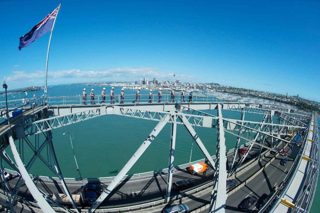 오클랜드 항구 다리의 정상까지 기억에 남고 편안한 산책을 즐겨보세요.
