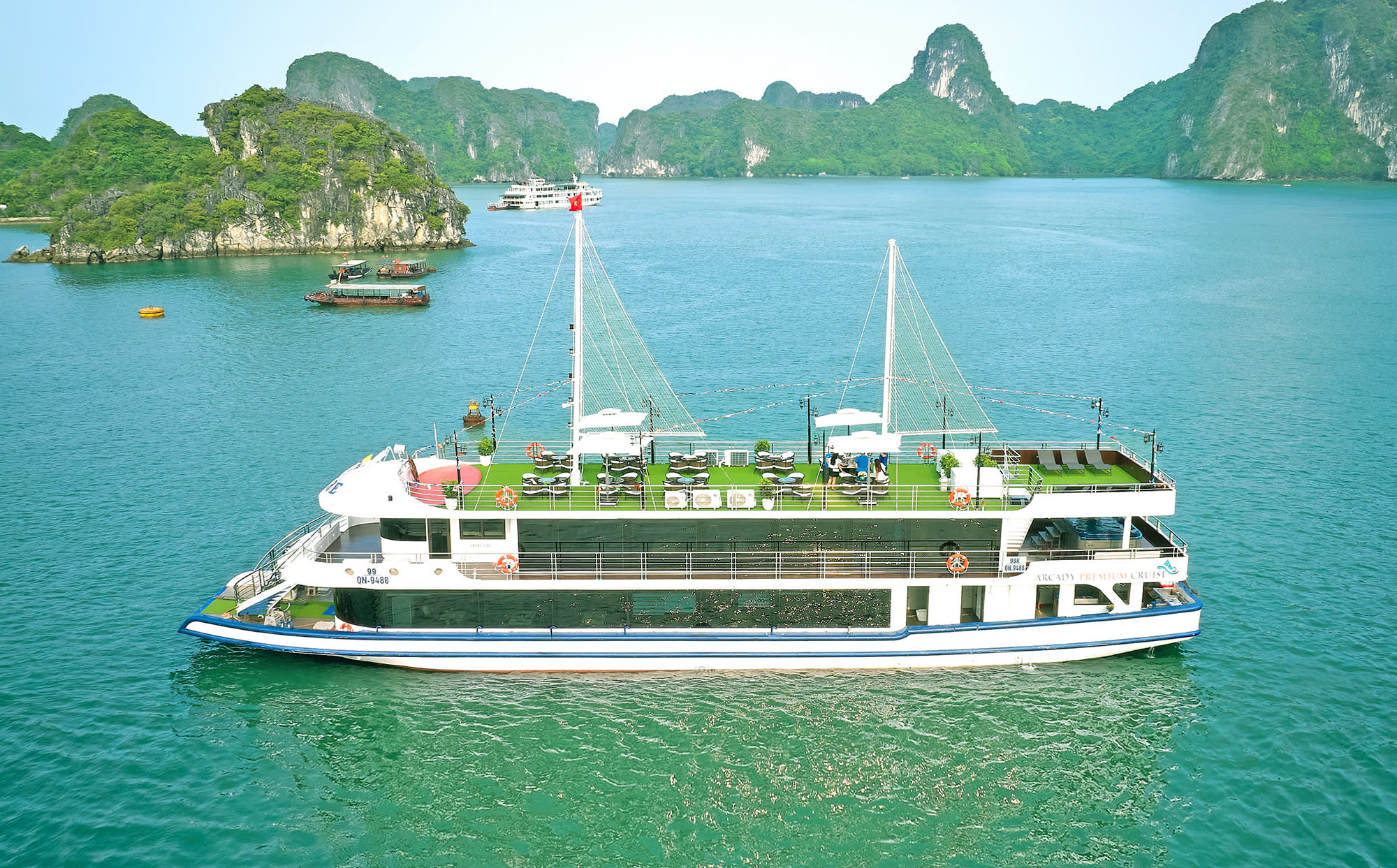 Arcady Premium Day Cruise는 유네스코 세계 문화유산인 하롱베이의 주요 명소를 단 하루 만에 고급스럽고 효율적으로 경험할 수 있는 방법입니다. 이 투어는 하노이에 머무는 여행객 중 시간이 제한적이지만 편리한 왕복 교통편과 함께 하롱베이의 상징적인 아름다움에 흠뻑 빠지고 싶은 분들에게 탁월한 선택입니다. 숙련되고 친절한 영어 가이드가 하노이에서부터 동행하여 유익한 해설을 제공하고 처음부터 끝까지 원활하고 체계적인 여행을 보장합니다.