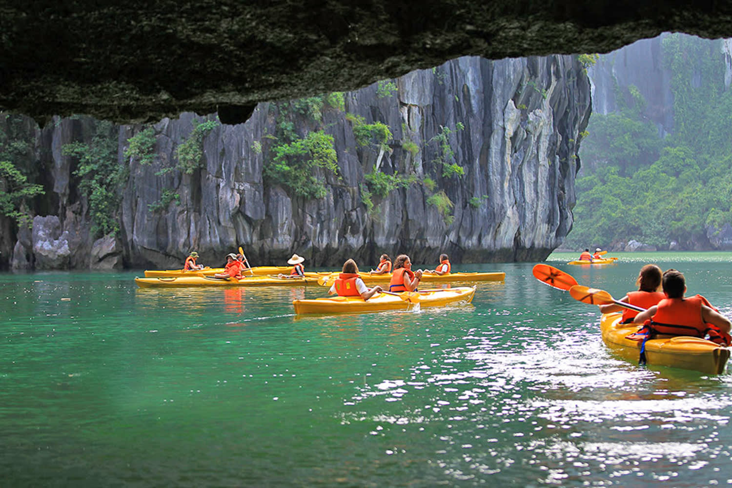 * 카약을 타거나 대나무 보트를 저어 하롱베이의 주요 상징 중 하나인 루온 동굴을 방문해보세요.