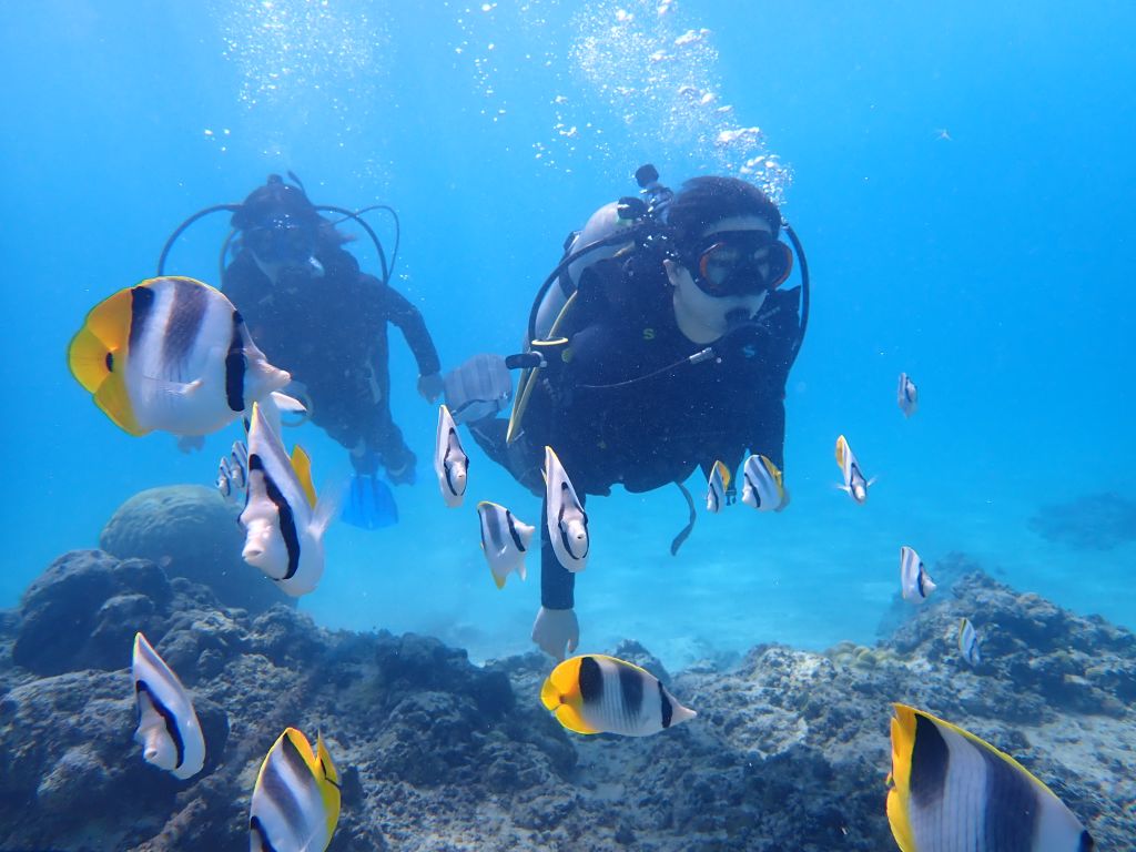 강사님의 가이드에 따라 약 20분간 호흡하는 법, 잠수하는 법, 간단한 수신호를 배우면 바다속 여행 준비 끝, 이후 강사님과 함께 약 40분에서 50분동안 티니안 타총나 비치의 열대어와 산호를 만나는 여행을 떠나는 프로그램입니다.
