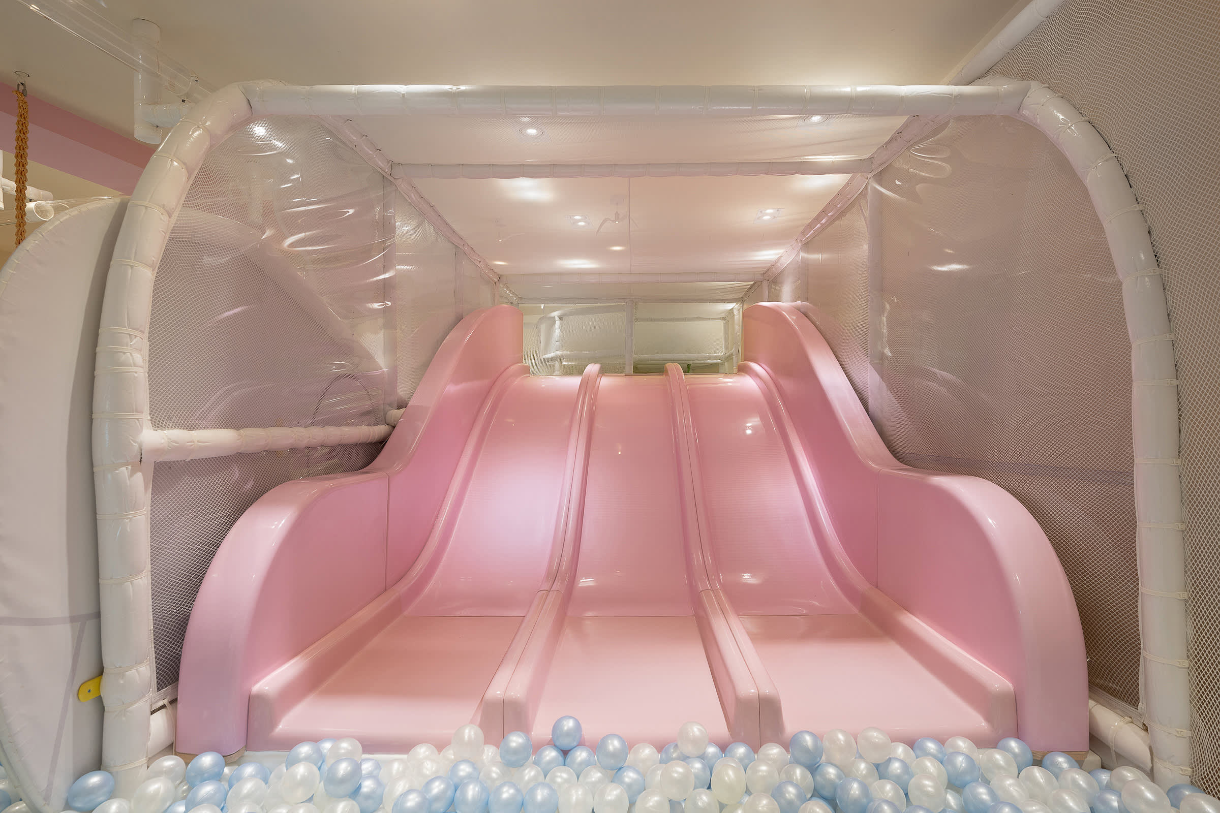 * 드림 버블 하우스: 미끄럼틀을 통해 어린이들은 물리적 마찰력을 느끼고, 수만 개의 환상적인 거품 공간에서 소근육을 발달시킬 수 있습니다.