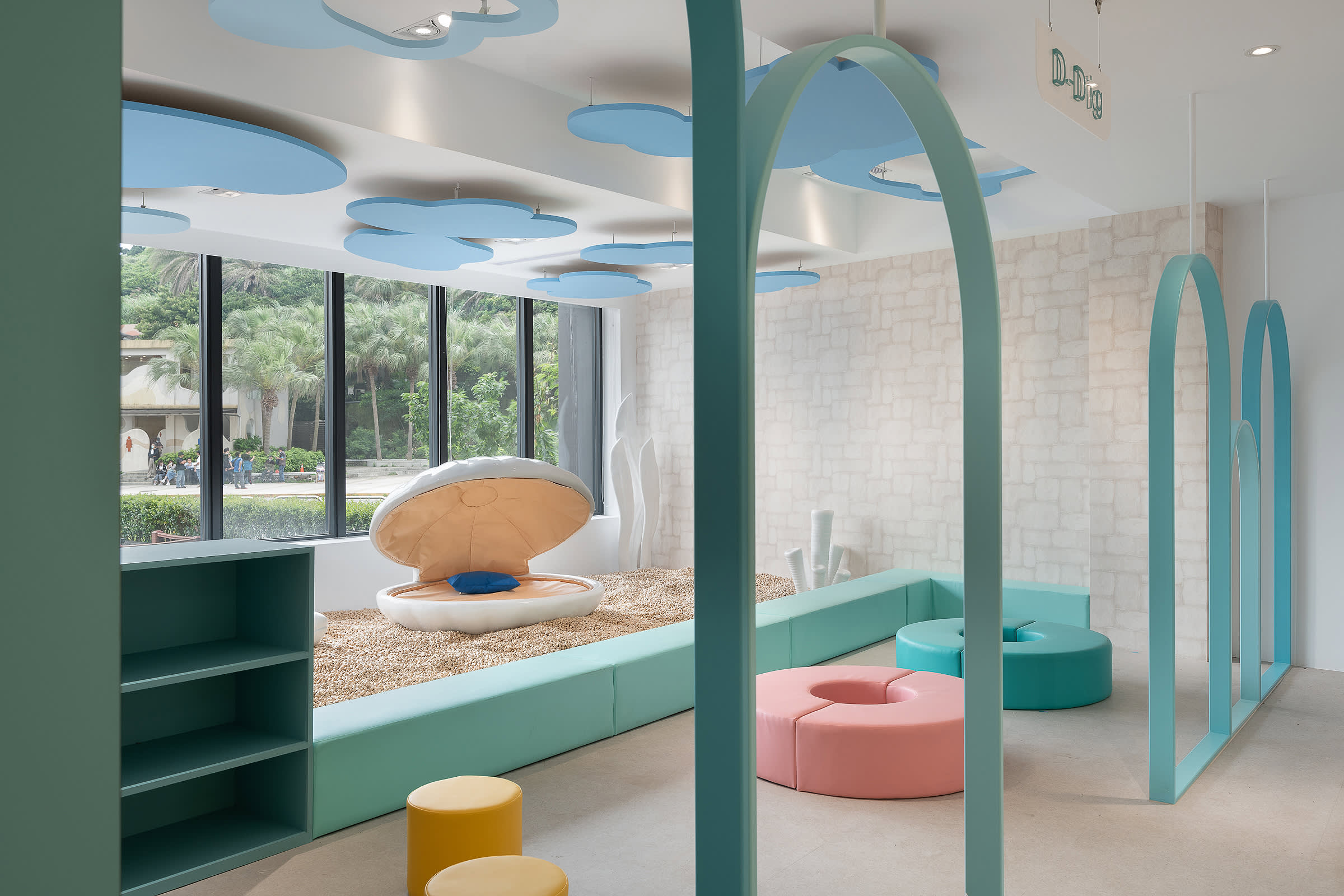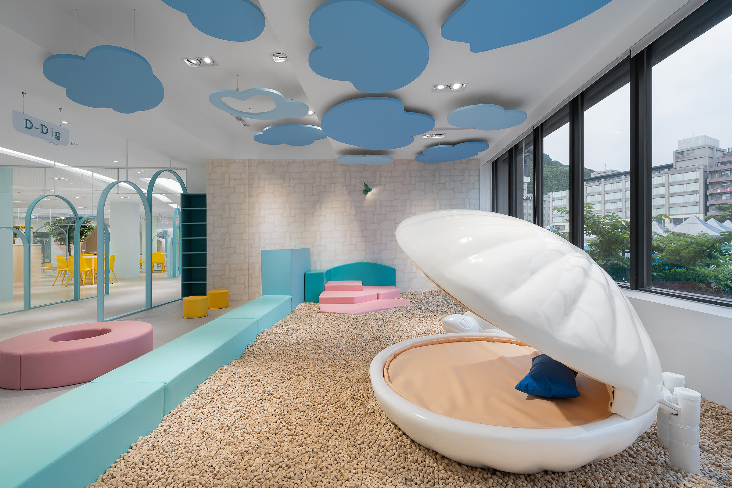 * D-Dig: 해외에서 수입한 네덜란드산 나무 블록 놀이 공간으로, 어린이들이 상상력을 발휘하여 자신만의 예술 작품을 만들 수 있습니다.