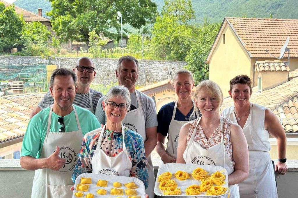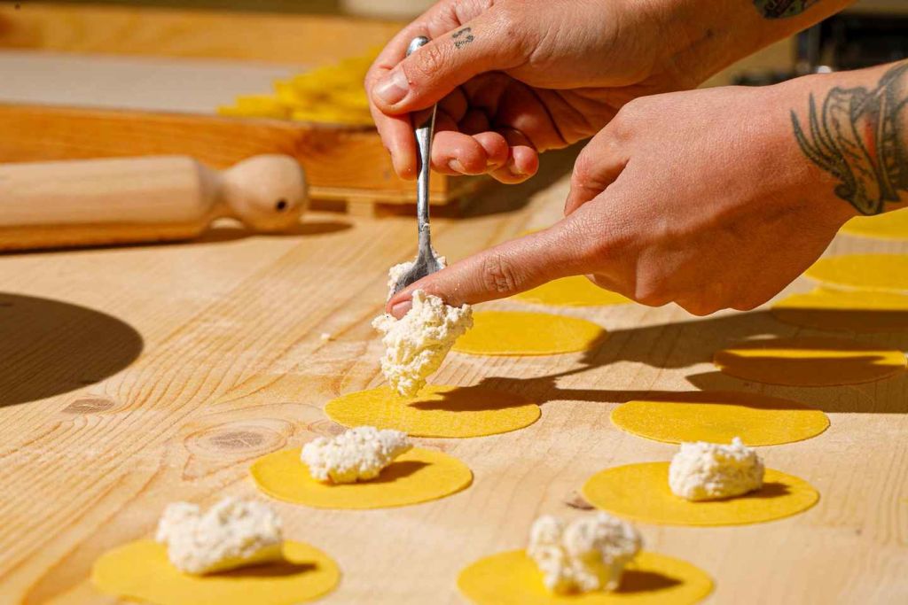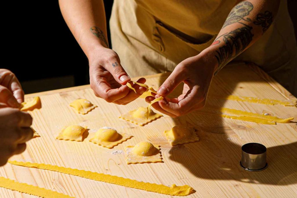 이탈리아 전통 파스타 두 가지 – 구름처럼 부드러운 라비올리와 실크처럼 매끄러운 타야텔레 –를 손으로 직접 만드는 방법을 배웁니다. 이탈리아인들이 세대를 이어온 방식 그대로입니다.