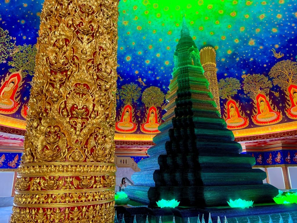 높이 69m에 달하는웅장한 황금색 불상과 에메랄드빛 유리탑의 왓 빡남 파씨 짜런 사원!