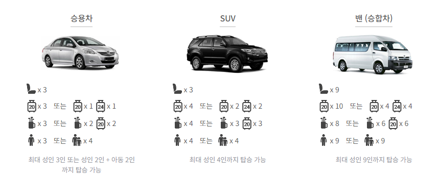 SUV → 승합차 : 36,000원 (1대가격)