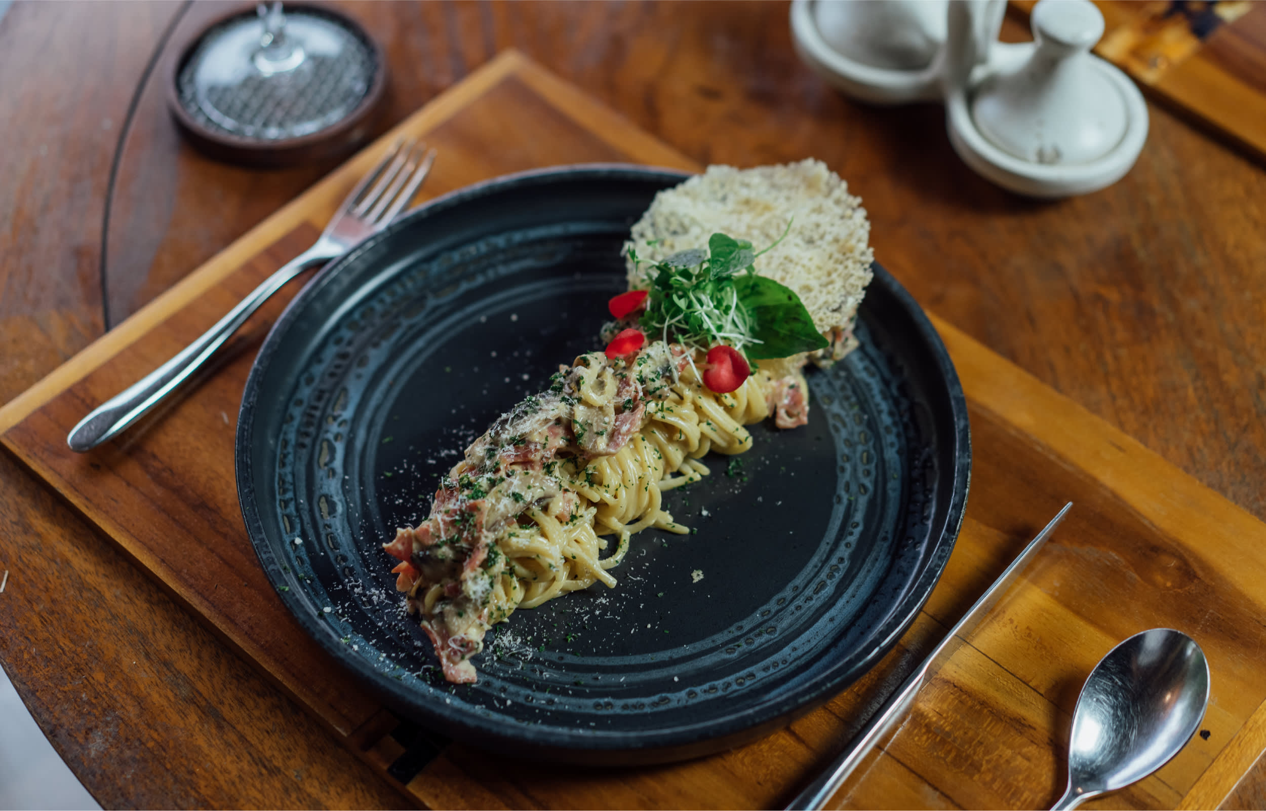 정교한 장인 정신으로 대나무와 나무로 완벽하게 장식된 발리 건축물과 진정한 발리 분위기를 만끽하고 최고의 미식 모험을 위해 정통 인도네시아 메뉴를 만나보세요!