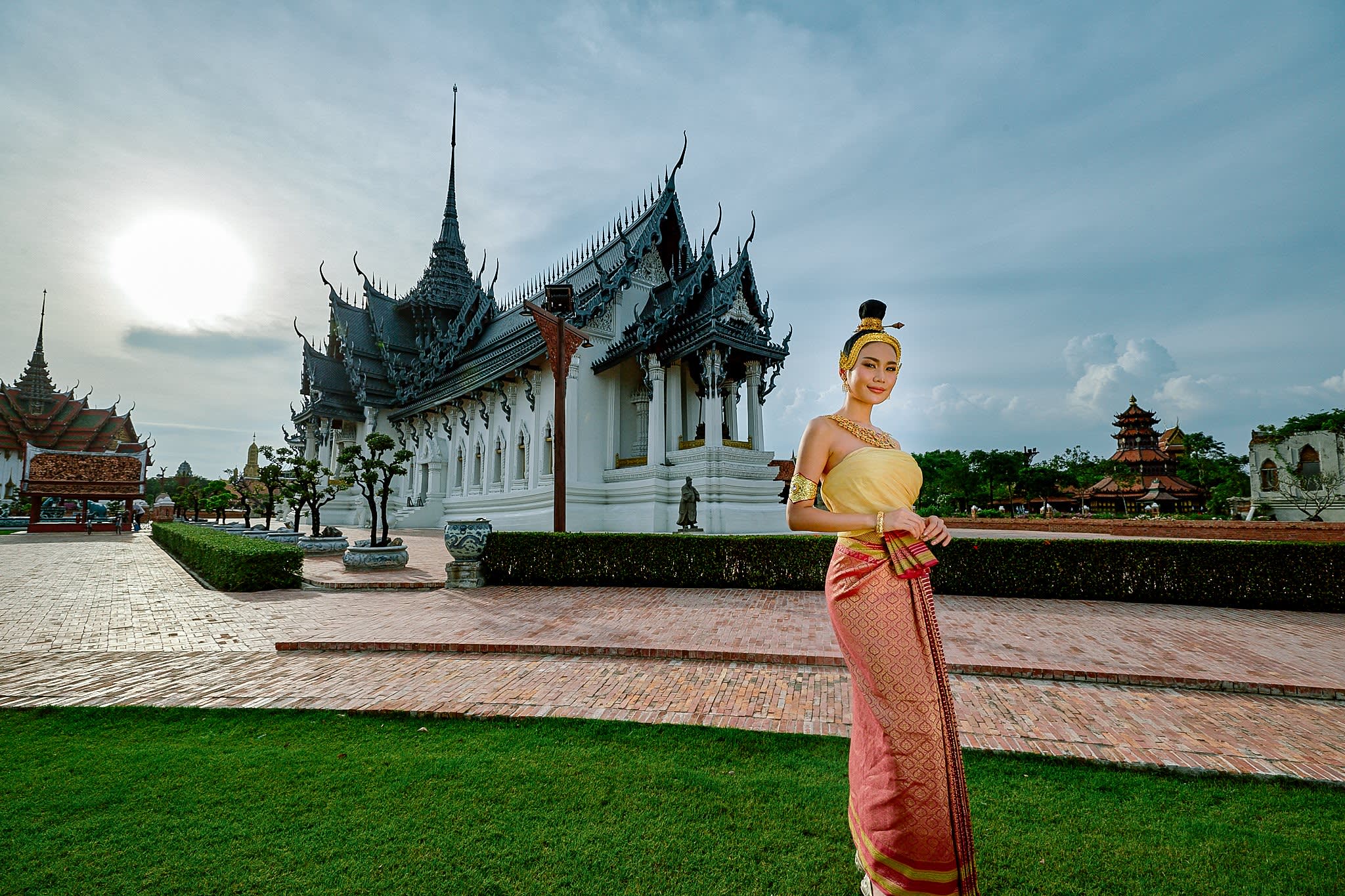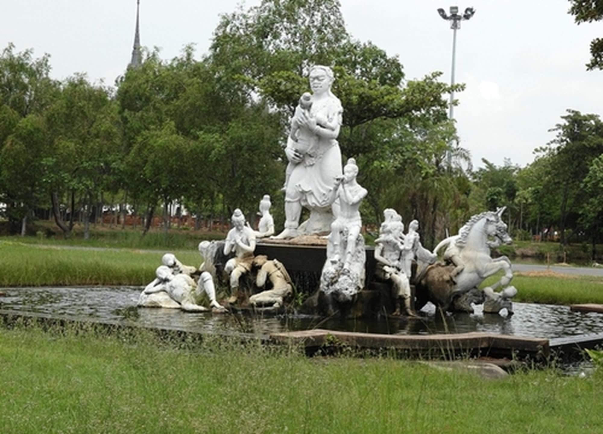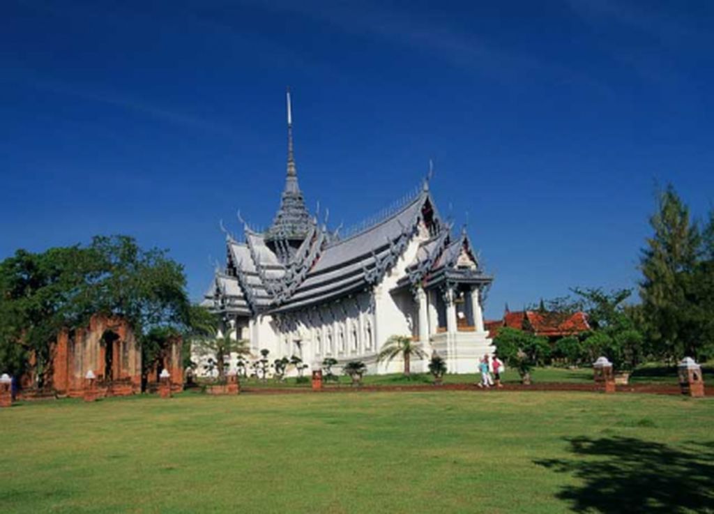 왕궁을 비롯해 다양한 사원, 탑, 석주, 전통 타이 가옥 모형과 재건된 역사적 유적지를