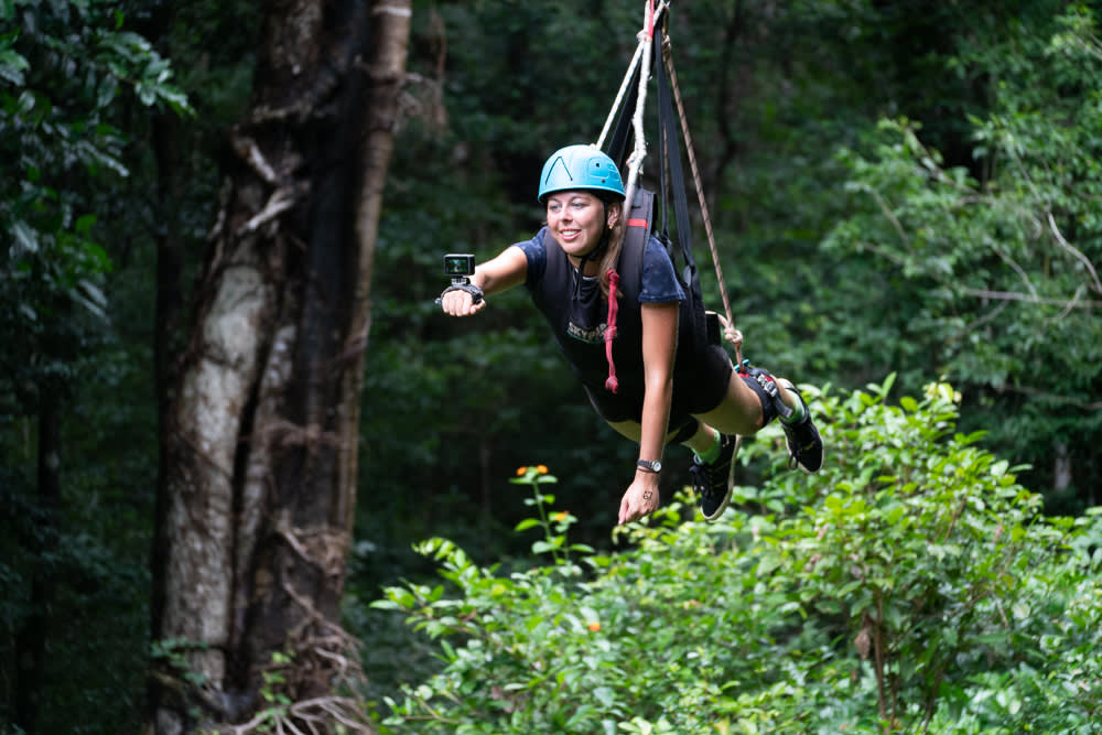 * 세계 유산으로 지정된 열대 우림 위를 날아오르며 시속 120km로 질주하세요.