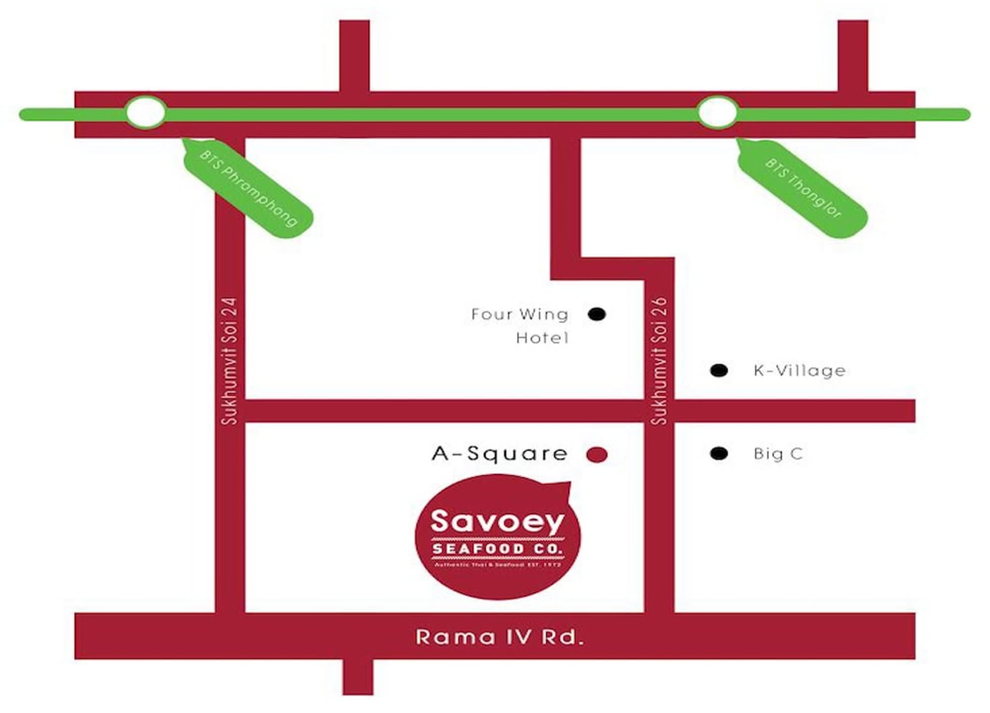 구글맵에서 'Savoey Restaurant - Seafood Co. Sukhumvit 26'를 검색 후 기사님에게 보여주세요.