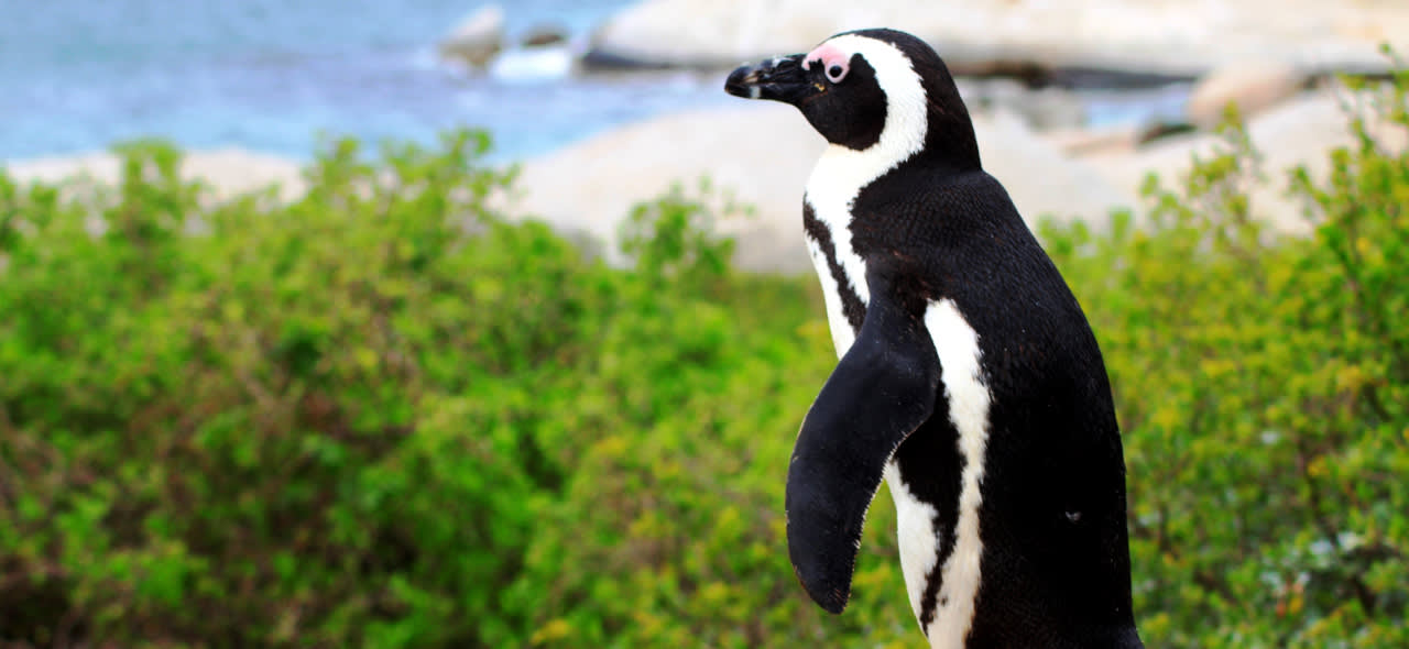 멸종 위기에 처한 2,000마리 이상의 아프리카 펭귄의 서식지인 볼더스 해변을 방문하여 자연 서식지에서 펭귄을 구경해 보세요.
