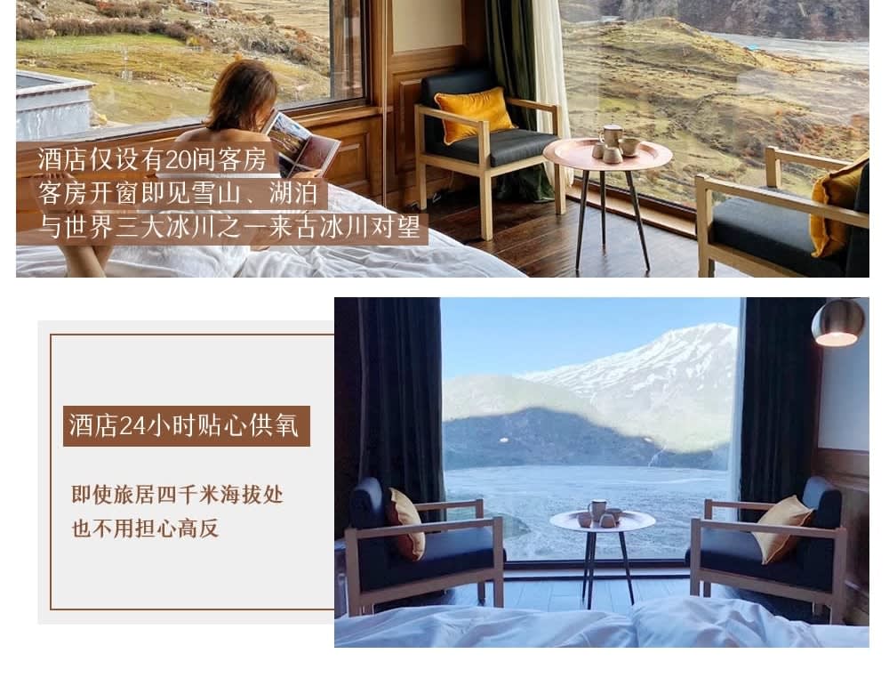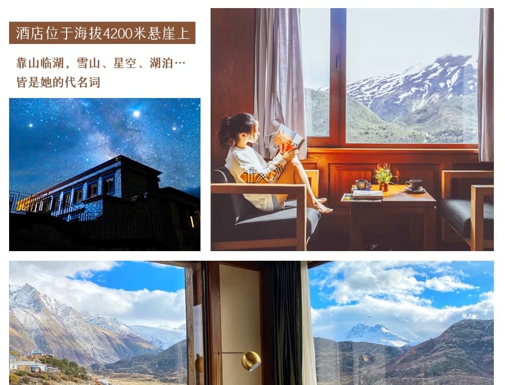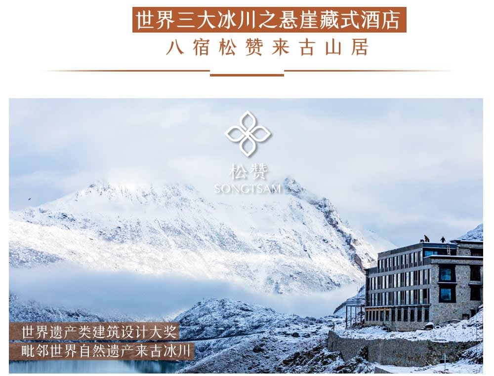 * 【쏭찬 라이구 마운틴 리트리트】:절벽 위의 밀폐형 완전 산소 공급 호텔로, 라이구 빙하를 마주하고 설산과 호수, 설산군, 빙하 사이에 자리 잡고 있습니다.