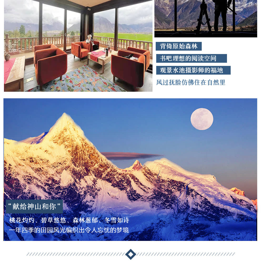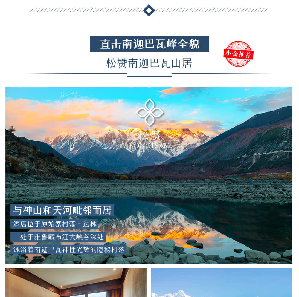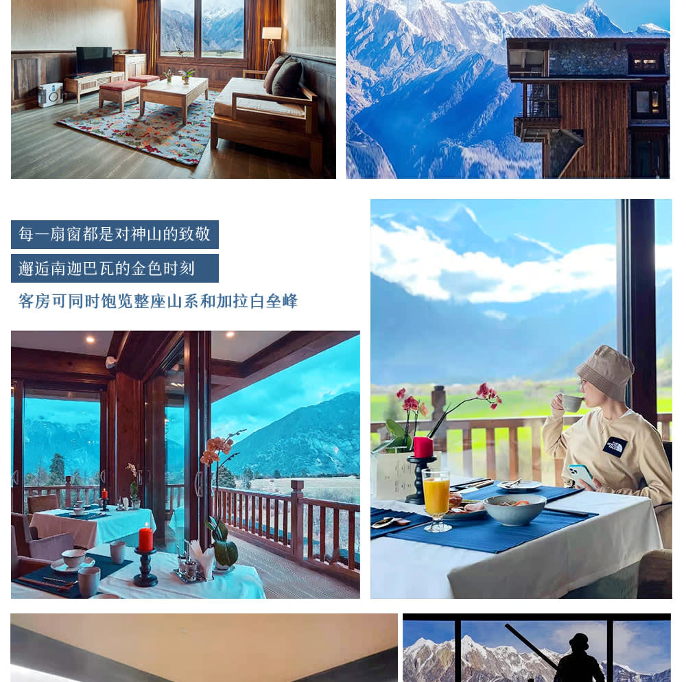 * 【쏭찬 난가바와 마운틴 리트리트】:모든 객실에서 "중국에서 가장 아름다운 산"인 난가바와 봉을 마주보고 있으며, 햇빛에 비친 금빛 산을 감상할 수 있습니다.
