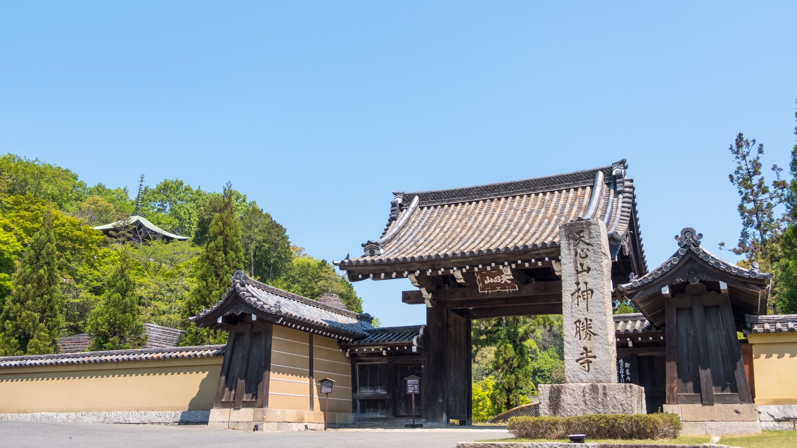 텐신산 신쇼지는 쇼와 40년(1965) 12월 2일 益州宗進선사(임제종 건인사파 제7대 관장)에게 깊이 귀의한 개기 神原秀夫씨가 선사를 개산으로 초청하여 건립된 임제종 건인사파의 특례 지사원입니다. 본존은 미륵보살, 사호는 개기의 아버지 神原勝太郎에서 유래합니다. 신쇼지는 돌아가신 분들의 공양의 장소임과 동시에, 선과 다도를 기본으로 일본뿐만 아니라 해외에도 널리 문호를 열어, 임제선을 통해 지금 바로 살아가고 있는 사람들이 「현재를 살아가기」 위해 자신을 응시하고 함께 연찬하기 위한 장소입니다.