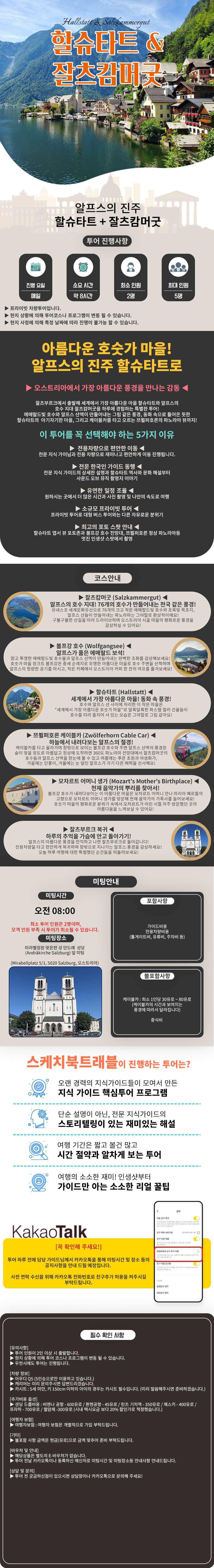 [한국어 가이드][잘츠부르크 출발] 할슈타트 동화 속 마을 인생사진 근교 차량투어 (후기이벤트)