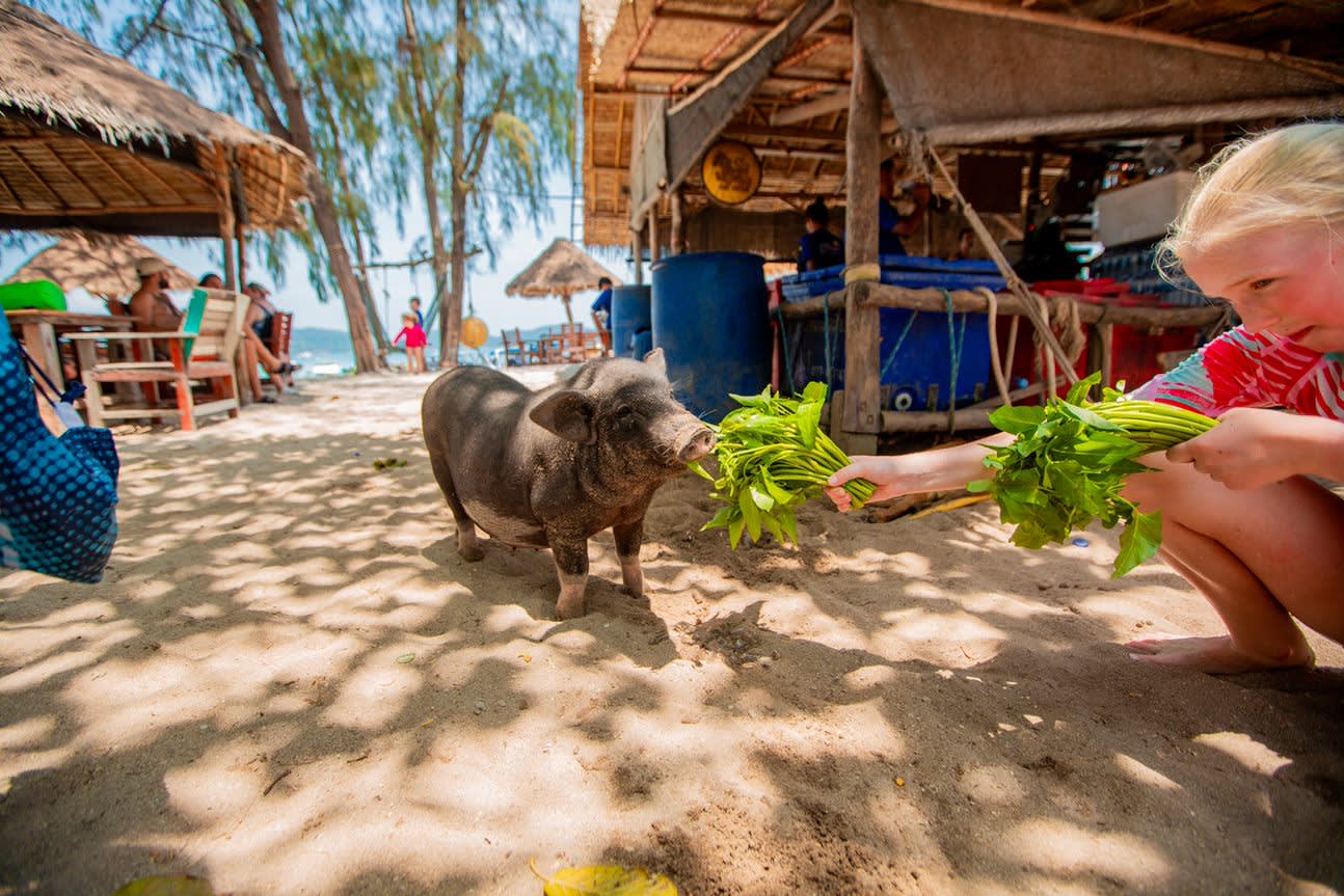 * 돼지 섬에서 수정처럼 맑은 바닷물에서 수영을 즐기고 섬의 친근한 돼지들을 만나보세요.