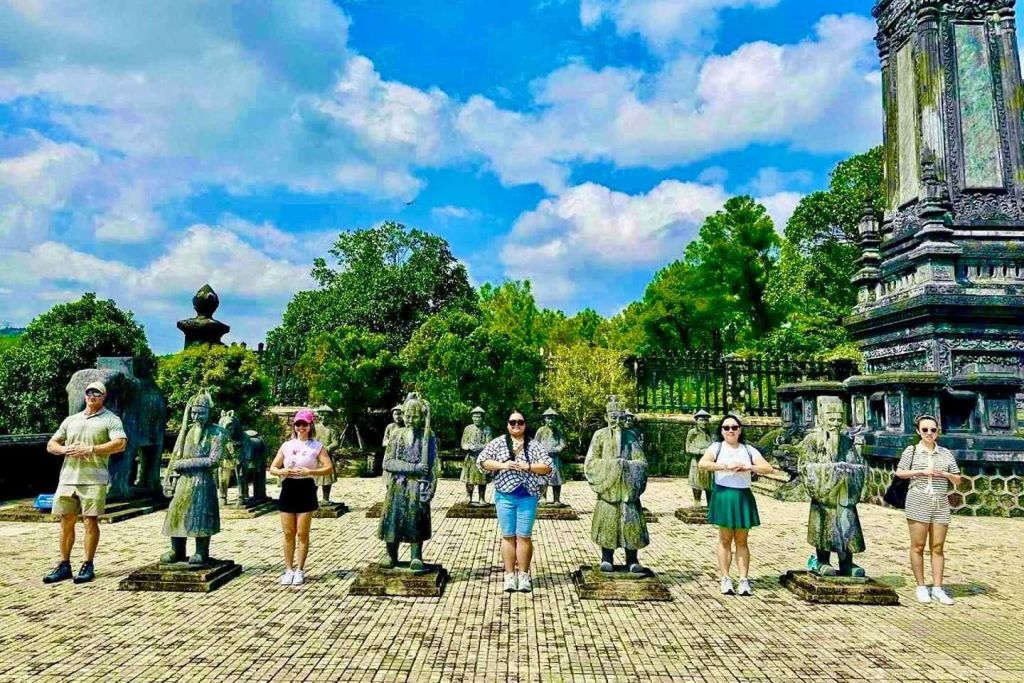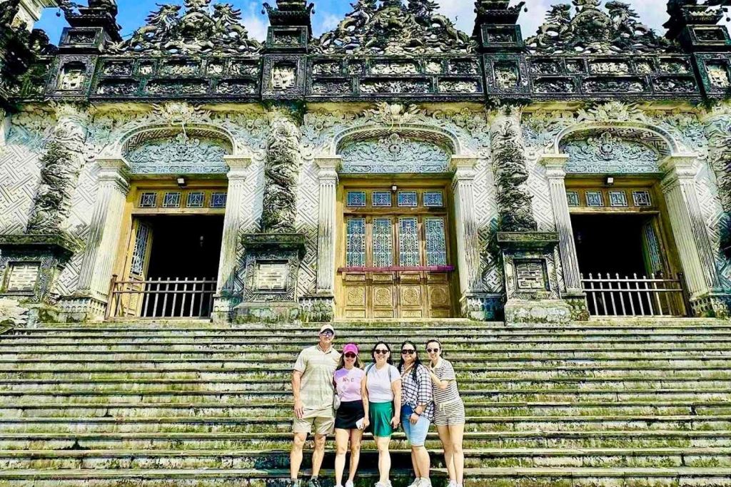 다음으로 민망 무덤을 방문하여 웅장한 건축물이 주변 자연 환경과 어떻게 조화를 이루는지 살펴보세요. 유네스코 세계문화유산인 카이딘 무덤으로 계속 이동하세요. 응우옌 왕조(1802~1945)의 마지막 건축물로 뛰어난 건축물을 감상하세요.
