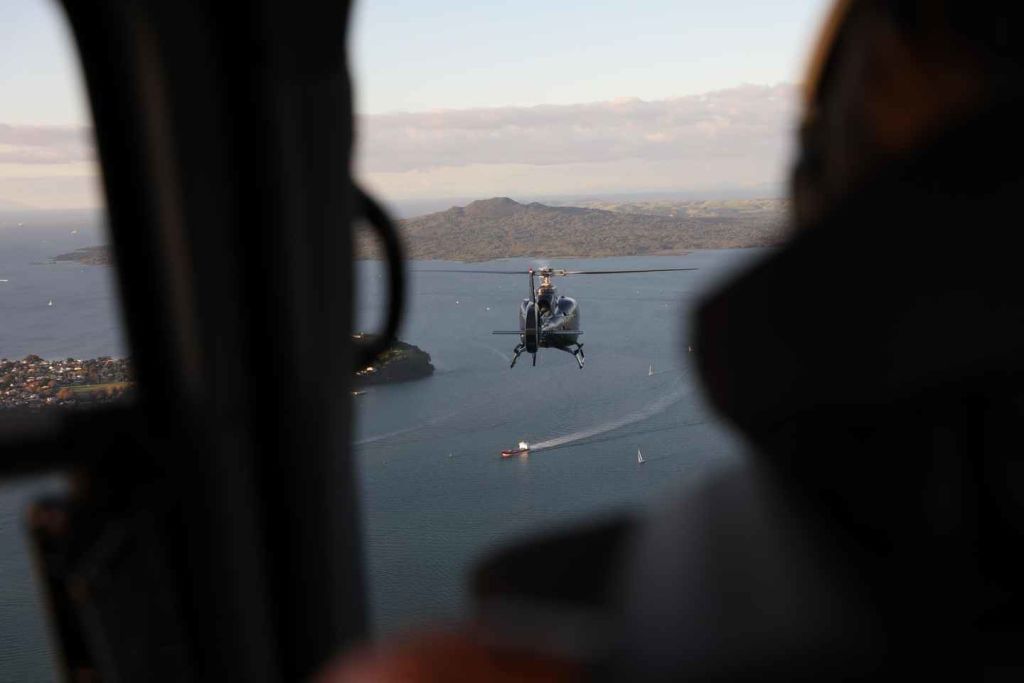 휴화산인 랑기토토 화산(오클랜드 최대 규모, 마지막 분화 약 550년 전)의 분화구를 향해 헬기를 타고 나간 후, 내륙 쪽 헬리포트로 회항합니다.