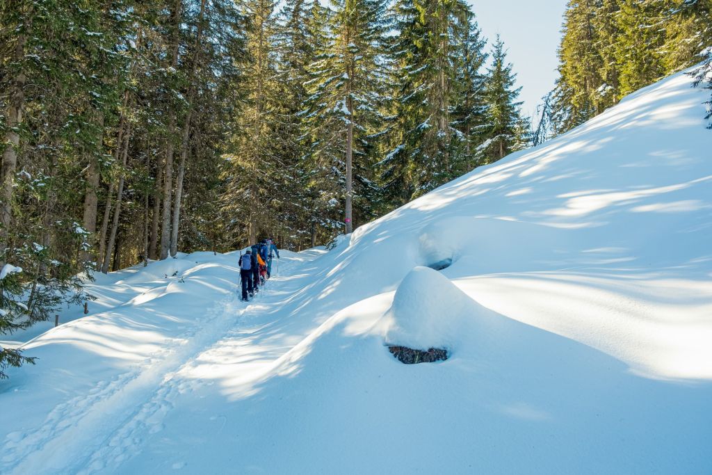 스위스 산악 마을을 스노우슈를 신고 하이킹 해보세요!