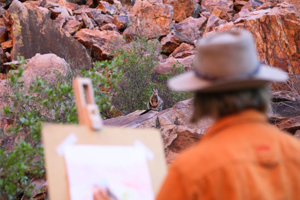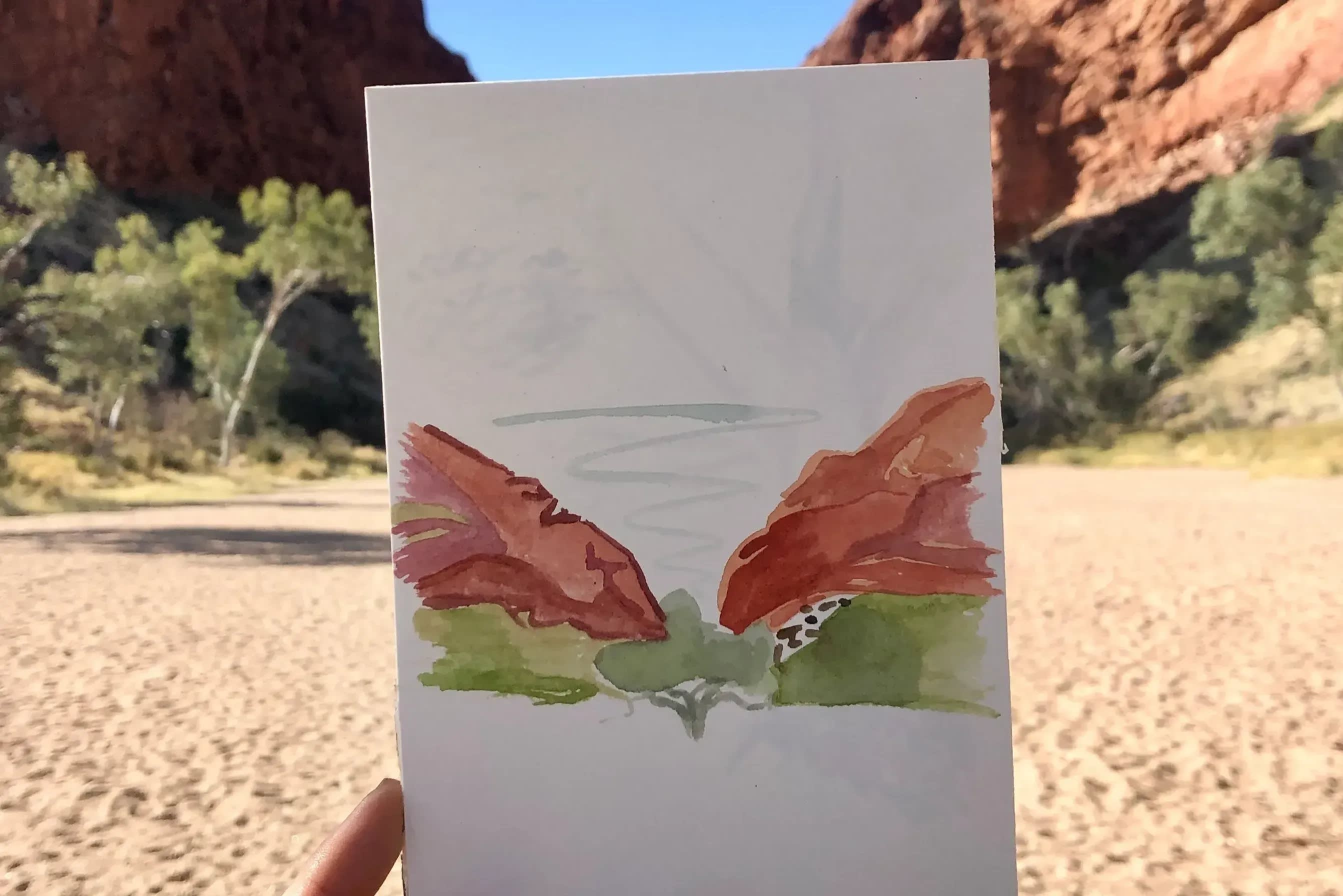 앨리스 스프링스에서 18km 떨어진 곳에 위치한 심슨스 갭은 석양이 질 때 다채로운 색상으로 물들어 수채화 그리기에 완벽한 자연의 경이로움입니다.