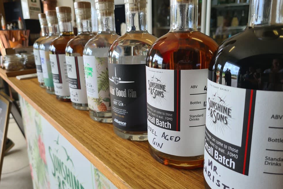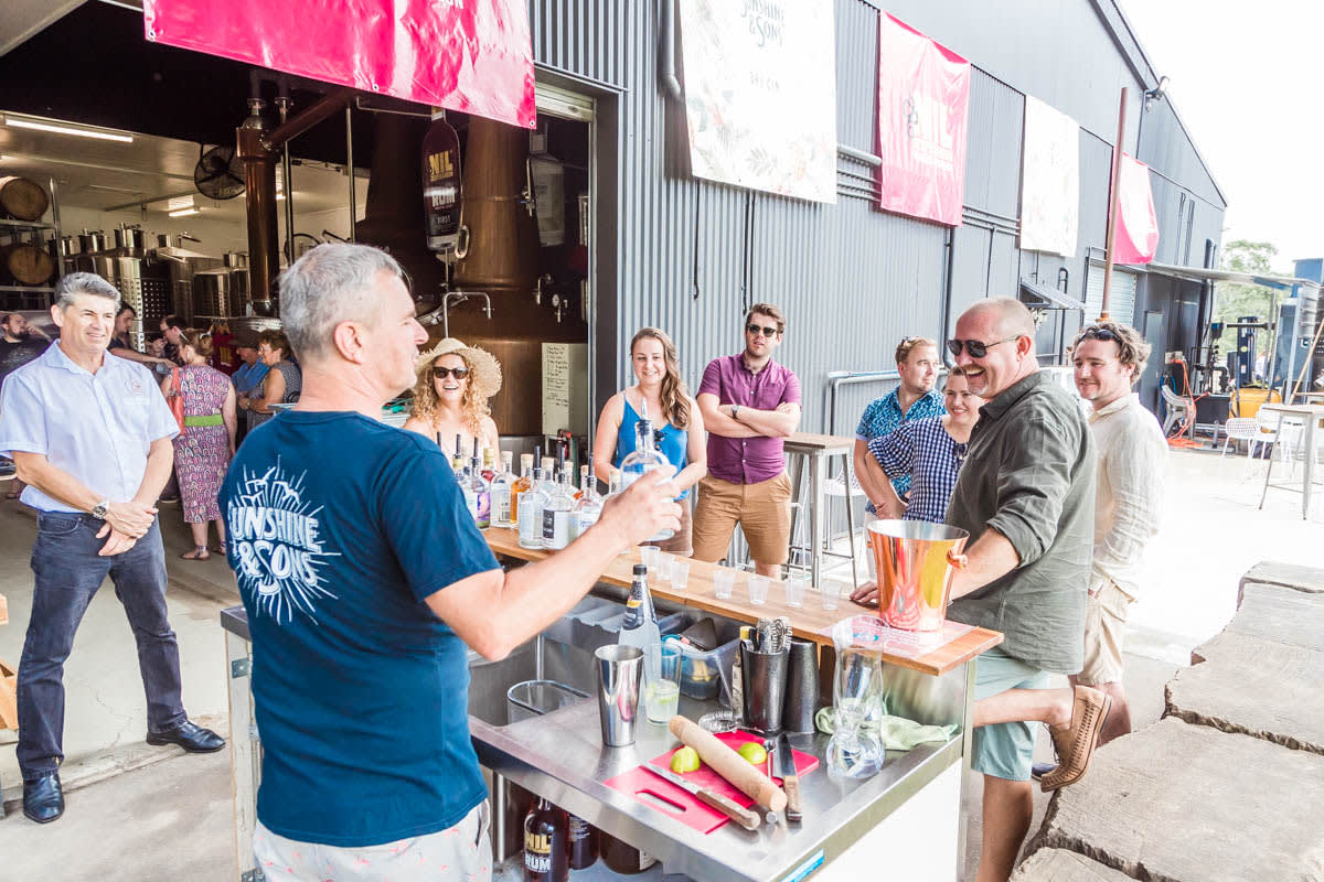 * 선샤인 앤 선즈에서 지역의 역사에서 영감을 받은 파인애플 파르페 진을 포함한 수제 증류주를 만나보세요.