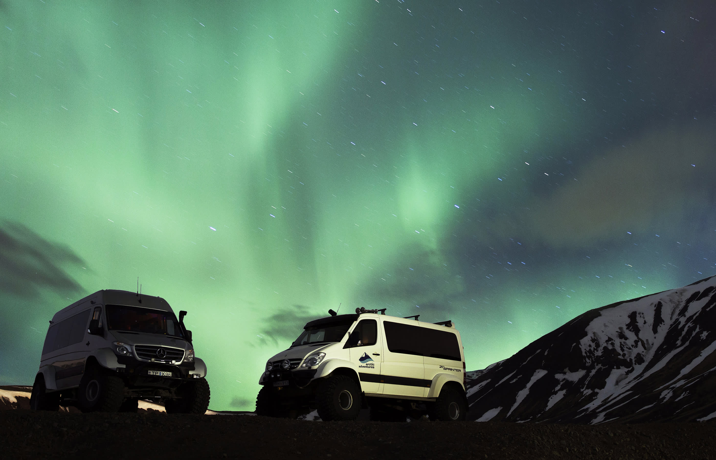 * 레이캬비크의 불빛을 뒤로하고 어두운 시골로 이동해 오로라를 만나보세요.