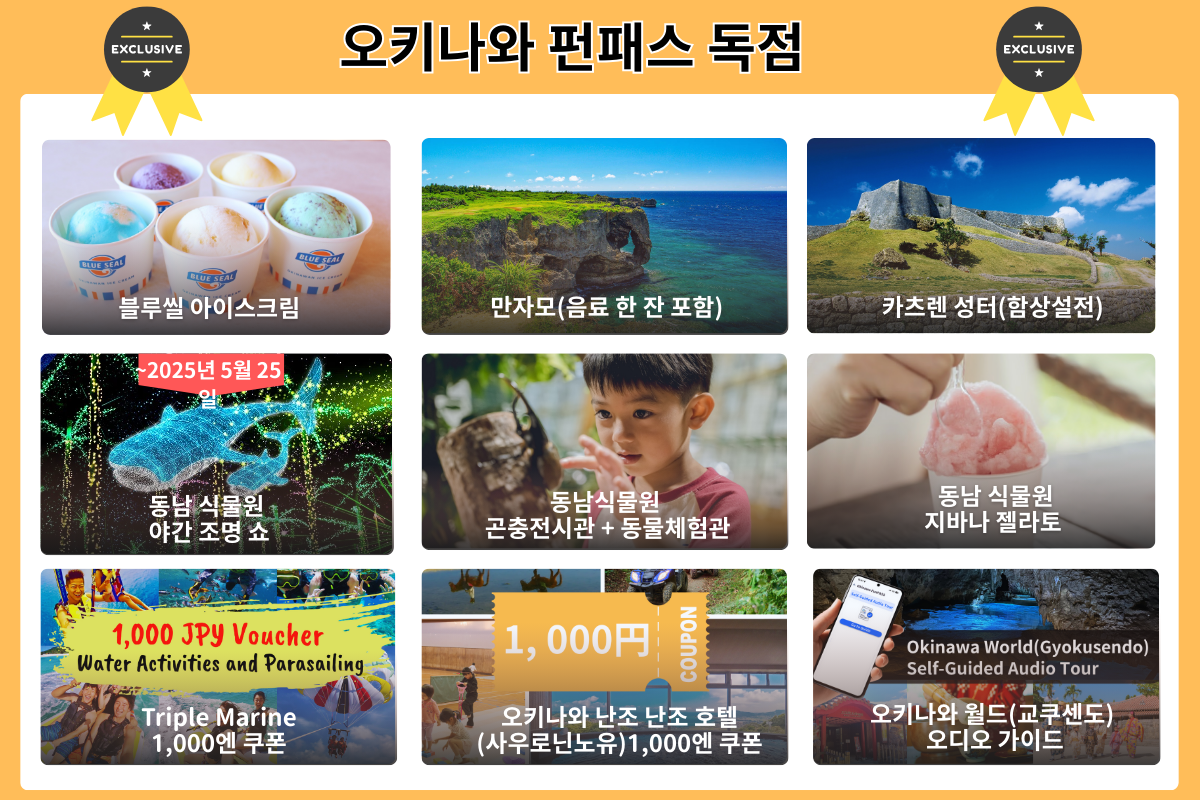 시간 절약, 비용 절감, 여행 걱정까지 줄여주는 오키나와 여행 방법! Okinawa FunPASS가 가장 스마트한 선택입니다!