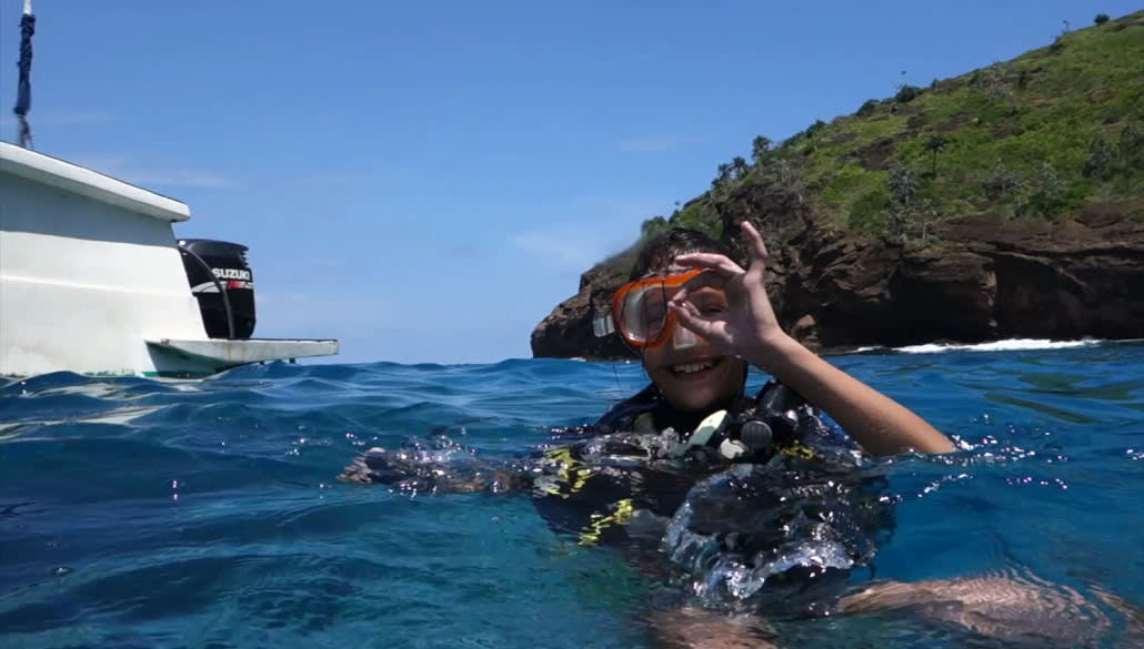 * 수정처럼 투명한 만의 상쾌한 바닷물 속으로 뛰어들어 보세요.