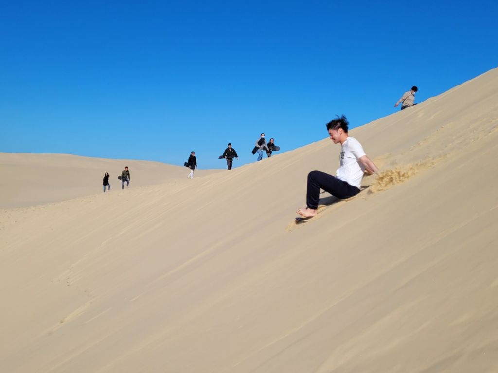 사막을 연상시키는 해안사구에서 사륜구동 차량 탑승과 짜릿한 모래 썰매를 체험합니다. (옵션 선택 시)