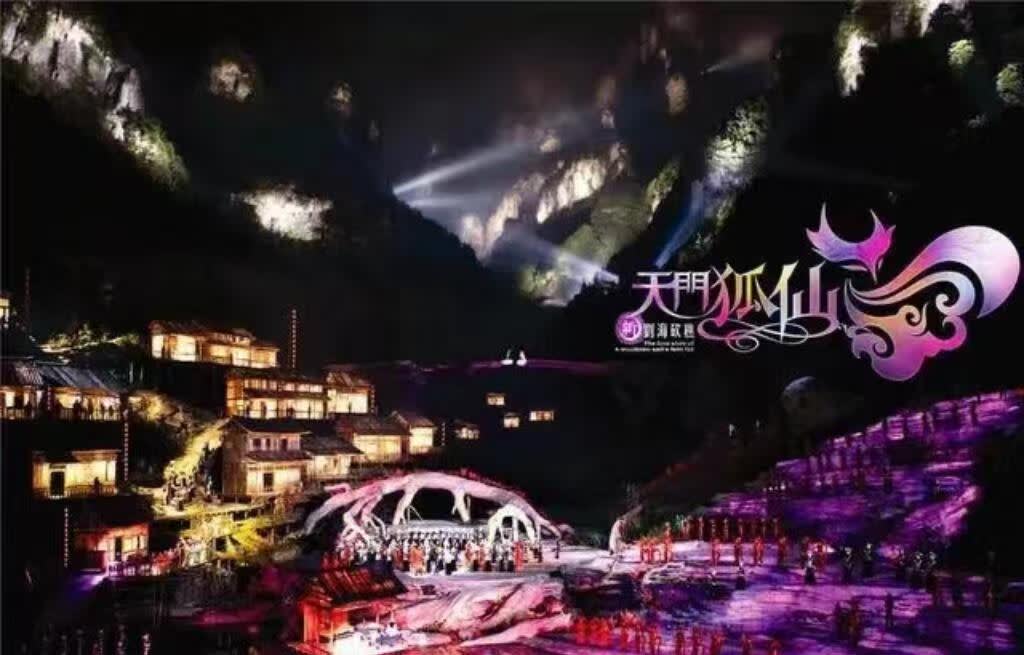 [천문호선(天门狐仙)]은 웅장한 무대 배경과 첨단 기술을 이용하여 마치 선경과 같은 환상적인 장면으로 안내합니다. 장자제(张家界) 천문산(天门山)을 배경으로 세계 유일의 고산 협곡 대무대를 만들었습니다. 500명이 넘는 배우들이 동시에 공연하며, 줄거리는 유명한 「류하이 간초(刘海砍樵)」에서 각색되었습니다. 아름다운 음악 선율과 화려한 무대 장면을 통해 아름다운 예술 향연을 함께 즐길 수 있습니다.