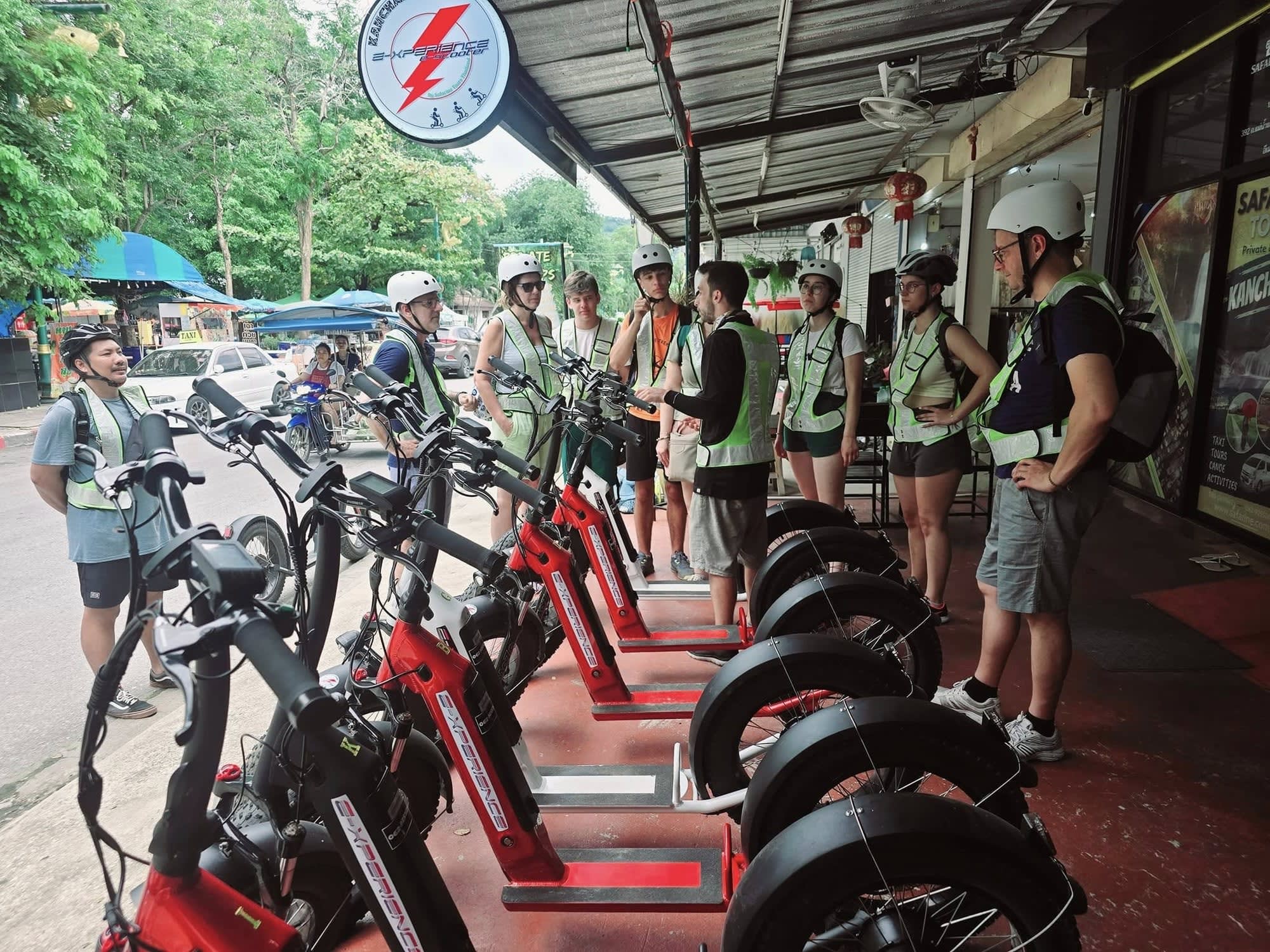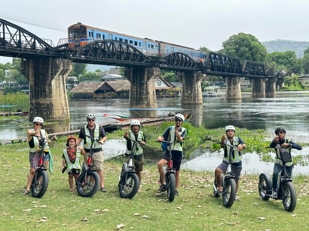 엔진 소음 없이 조용히 달리며 칸차나부리의 진짜 매력이 자연스럽게 느낄 수 있는 E-스쿠터 라이딩 칸차나부리입니다.