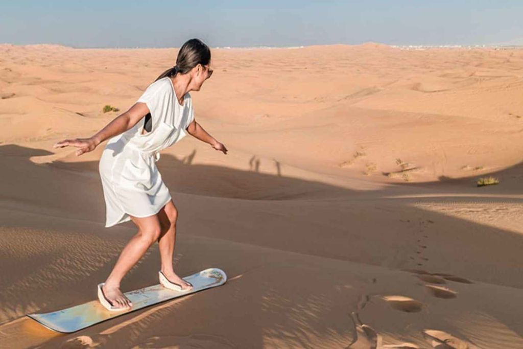 숙련된 운전자와 함께 모래 언덕 위를 신나게 달릴 준비를 하세요. 재미있고 스릴 넘치는 경험이 될 거예요! 그 후에는 모래언덕에서 샌드보드를 타며 사막의 멋진 사진을 찍을 수 있어요.