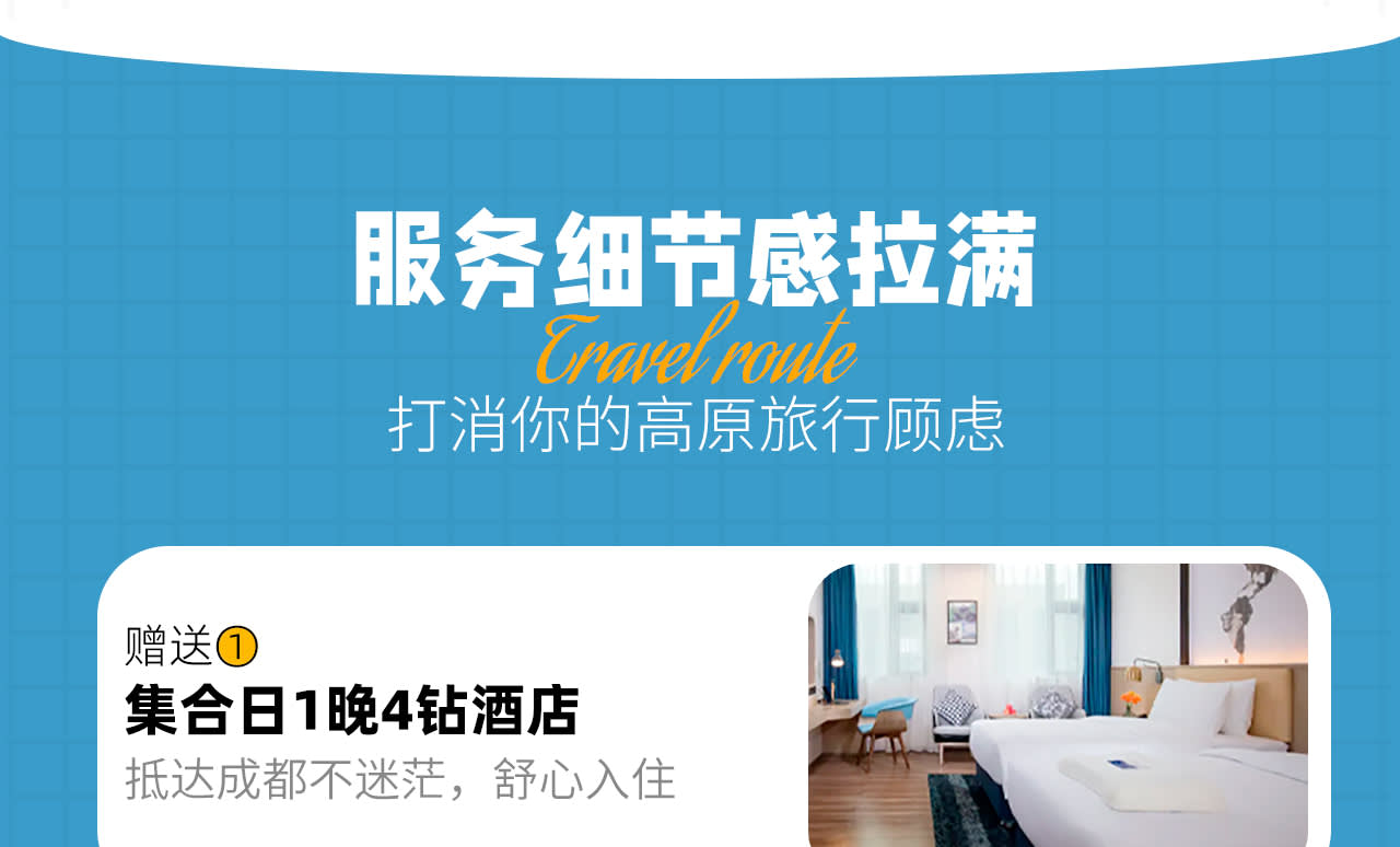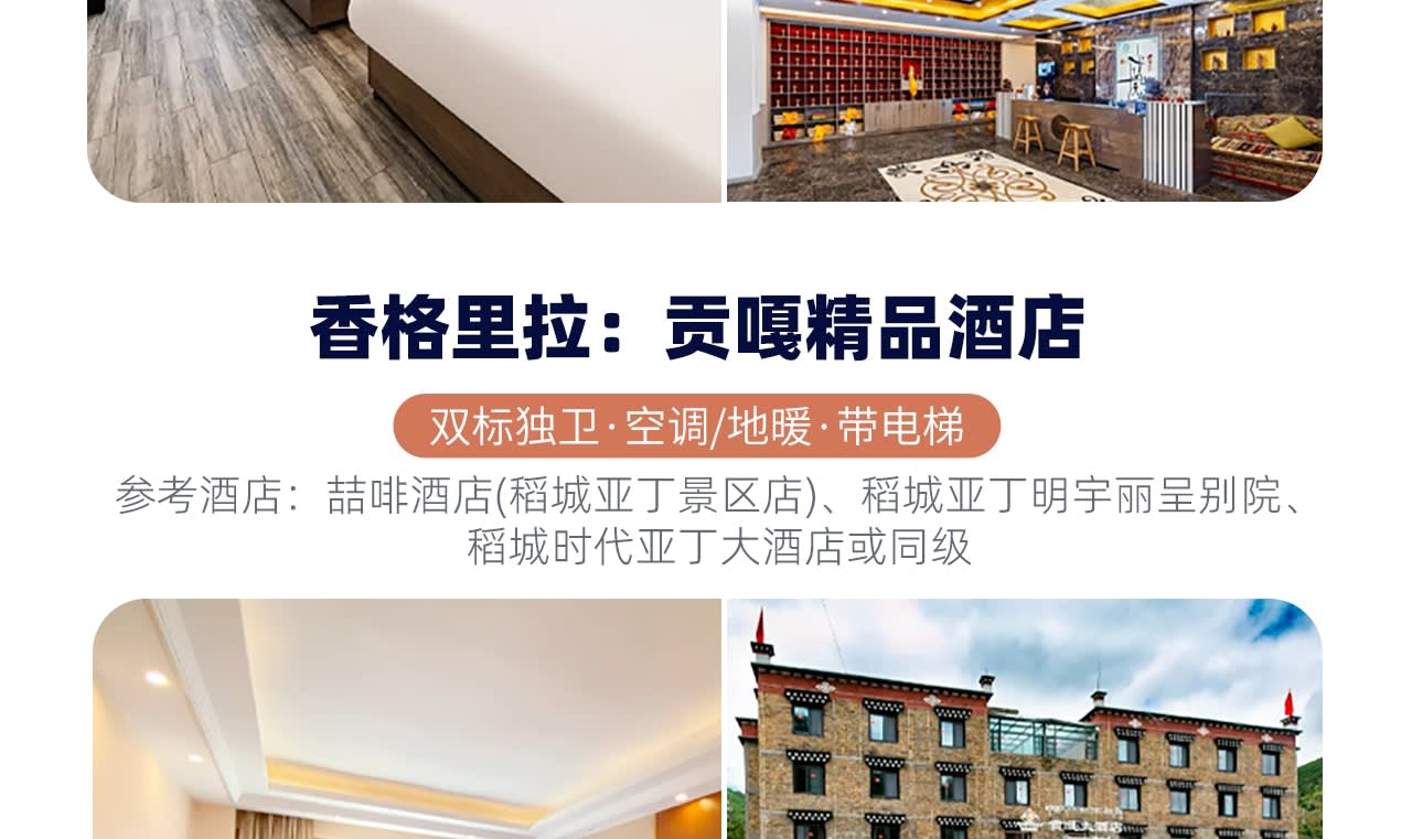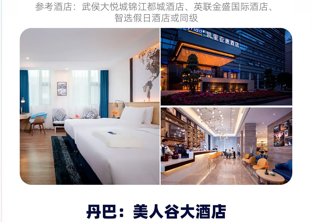 * [숙박 업그레이드] 전체 여정 호텔에 바닥 난방/에어컨 완비, 청두 4성급 호텔 업그레이드, 야딩은 저지대 지역에 숙박, 편안한 잠자리가 좋은 여행의 시작입니다.