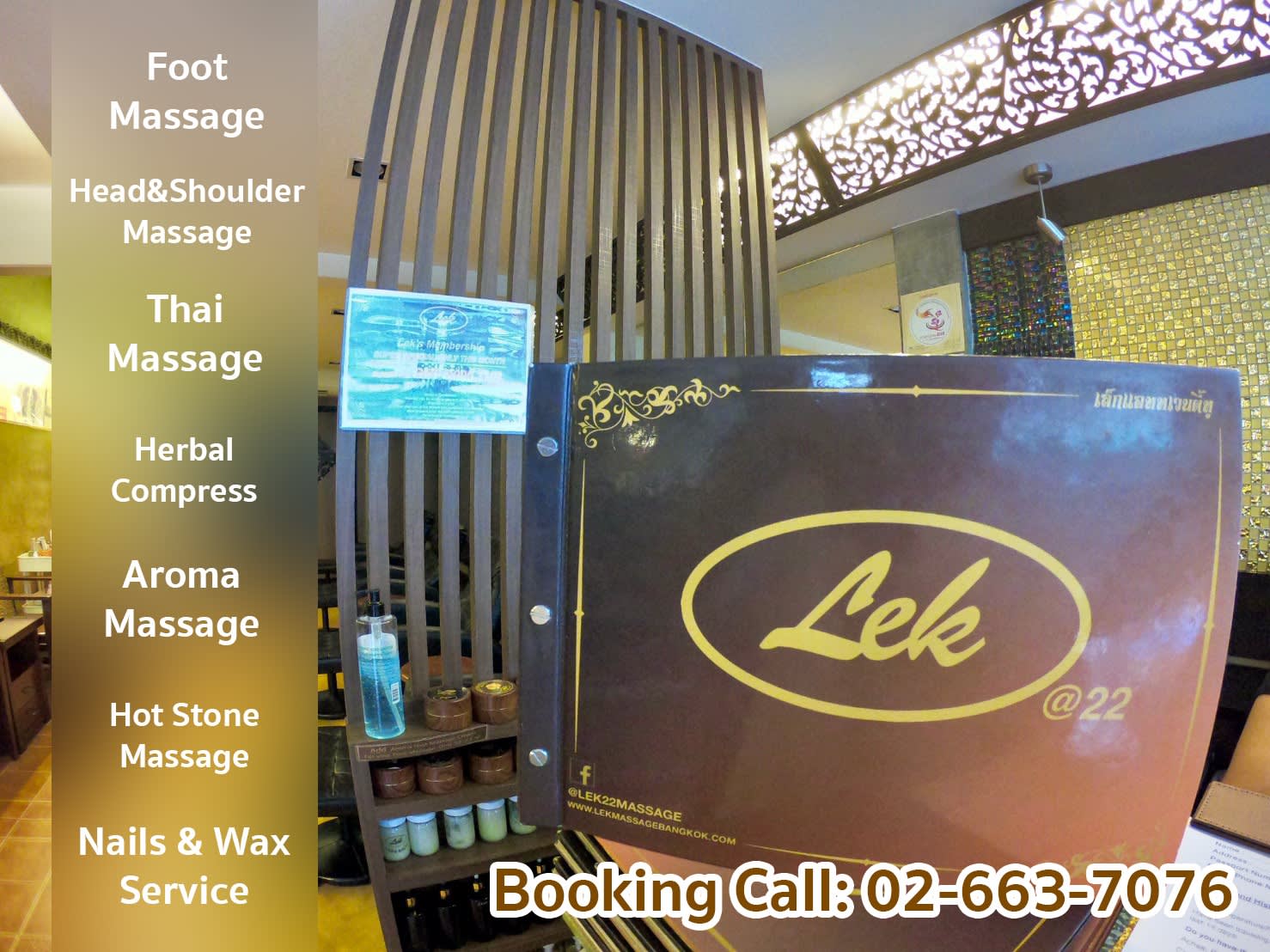 렉 마사지 방콕은 Thonglor, 프롬퐁, Asoke, Nana, 시암 스퀘어, National Stadium, Sala Daeng, Chon Nonsri, Hua Lam Phong 등 BTS 역 근처의 편리한 위치에서 정통 마사지 서비스를 제공합니다. 렉 마사지는 아카데미를 운영하여 테라피스트가 철저한 이론 및 실무 지식을 갖추도록 보완하고 고객의 기대에 부응하는 양질의 서비스를 우선시합니다. 거의 20년의 경험을 바탕으로 렉 마사지는 지속적으로 활력을 되찾아주는 경험을 제공하기 위해 최선을 다하고 있으며, 고객이 편안한 몸과 평온한 마음, 그리고 편안한 영혼으로 떠날 수 있도록 보장합니다.