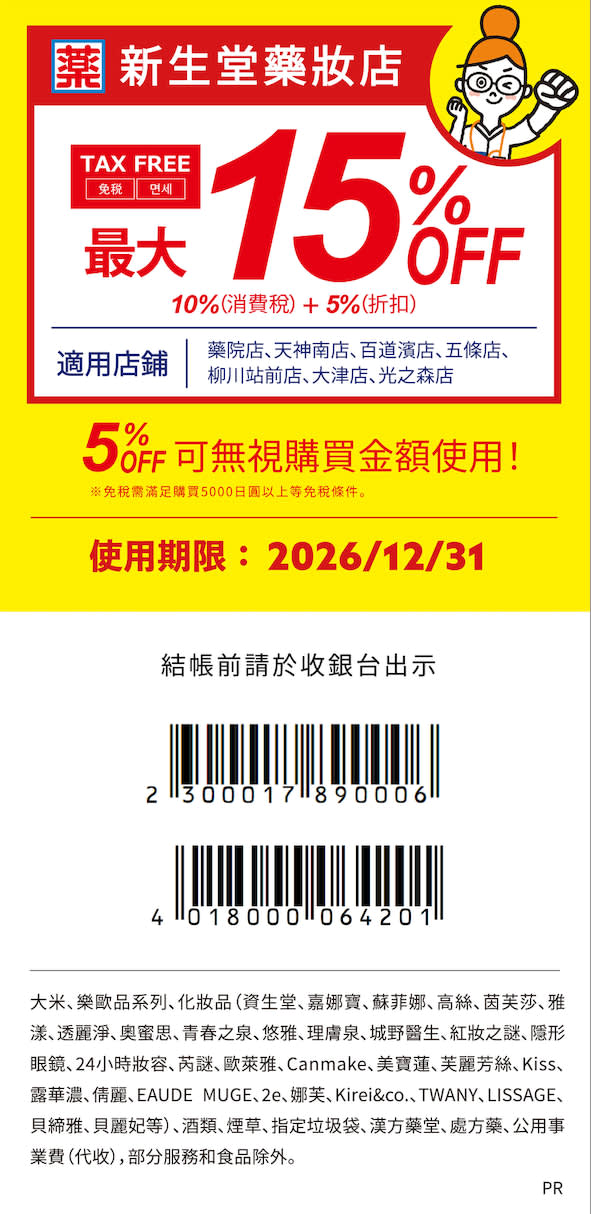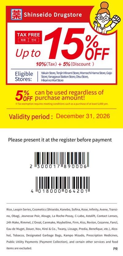 ▶신세이도 약국 5% 할인 쿠폰 * 중국어 할인쿠폰 중국어 할인쿠폰 * 영문 할인권 영문 할인권