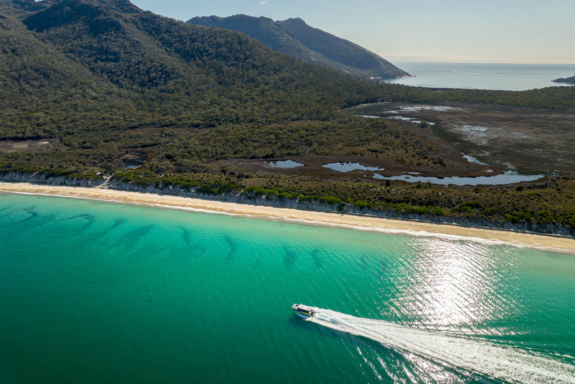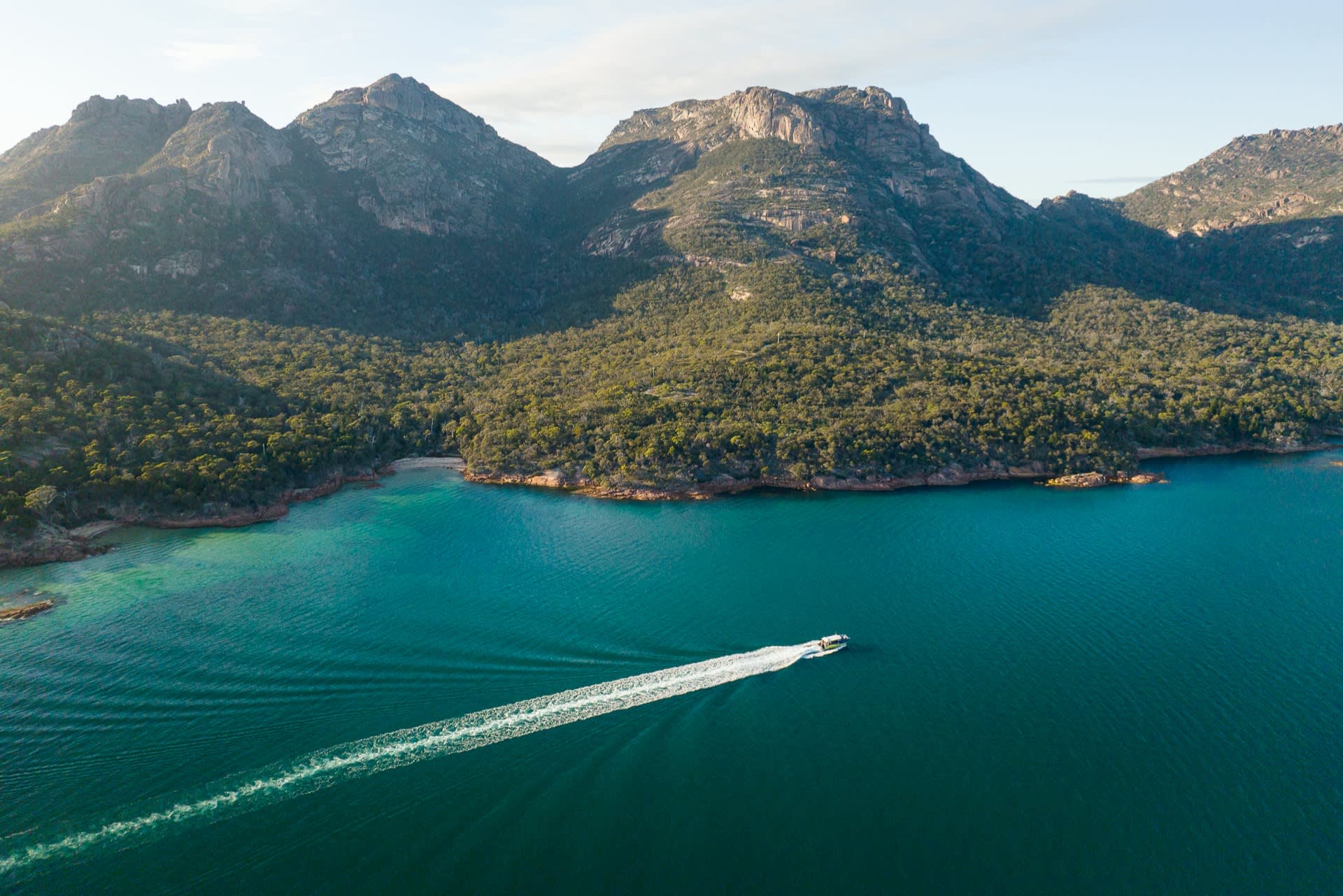 프레이시넷 국립공원은 거친 화강암 해안선이 청록색 바닷물과 깨끗한 백사장과 만나는 극적인 아름다움을 지닌 곳입니다. 세계 10대 해변 중 하나로 꾸준히 선정되는 와인글라스 베이(Wineglass Bay)는 헤저즈 산맥(Hazards mountain range)을 배경으로 아름다운 곡선의 하얀 해변으로 세계적으로 인정받고 있습니다.