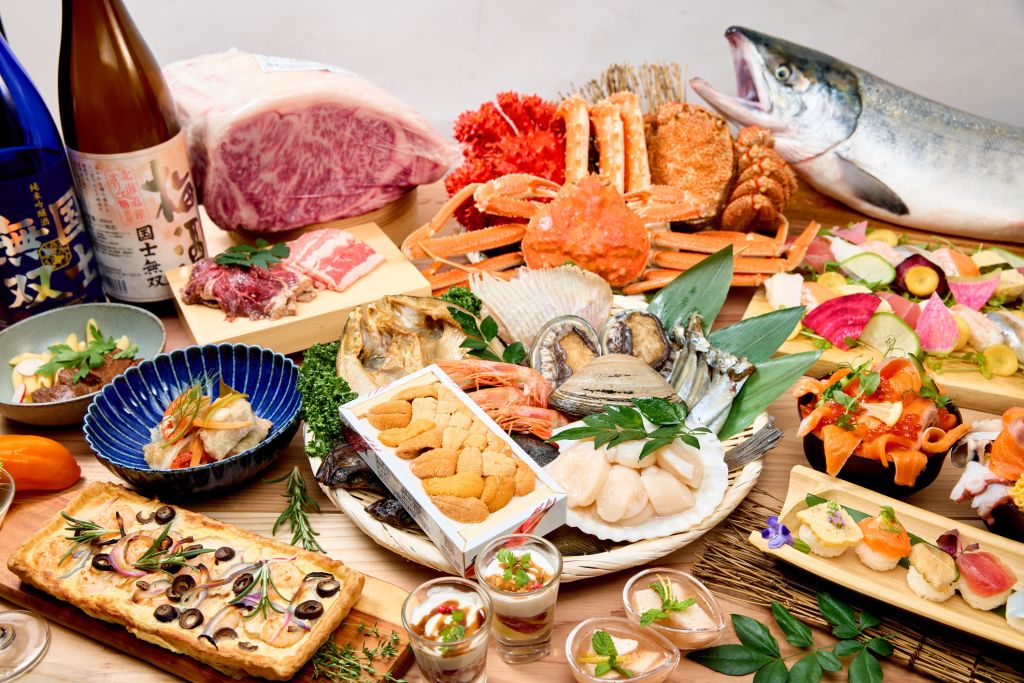 150가지가 넘는 뷔페 메뉴로 홋카이도 미식의 향연을 즐겨보세요! 무제한으로 제공되는 구운 고기와 해산물, 무한리필 게 요리, 무제한 음료를 즐기실 수 있습니다!