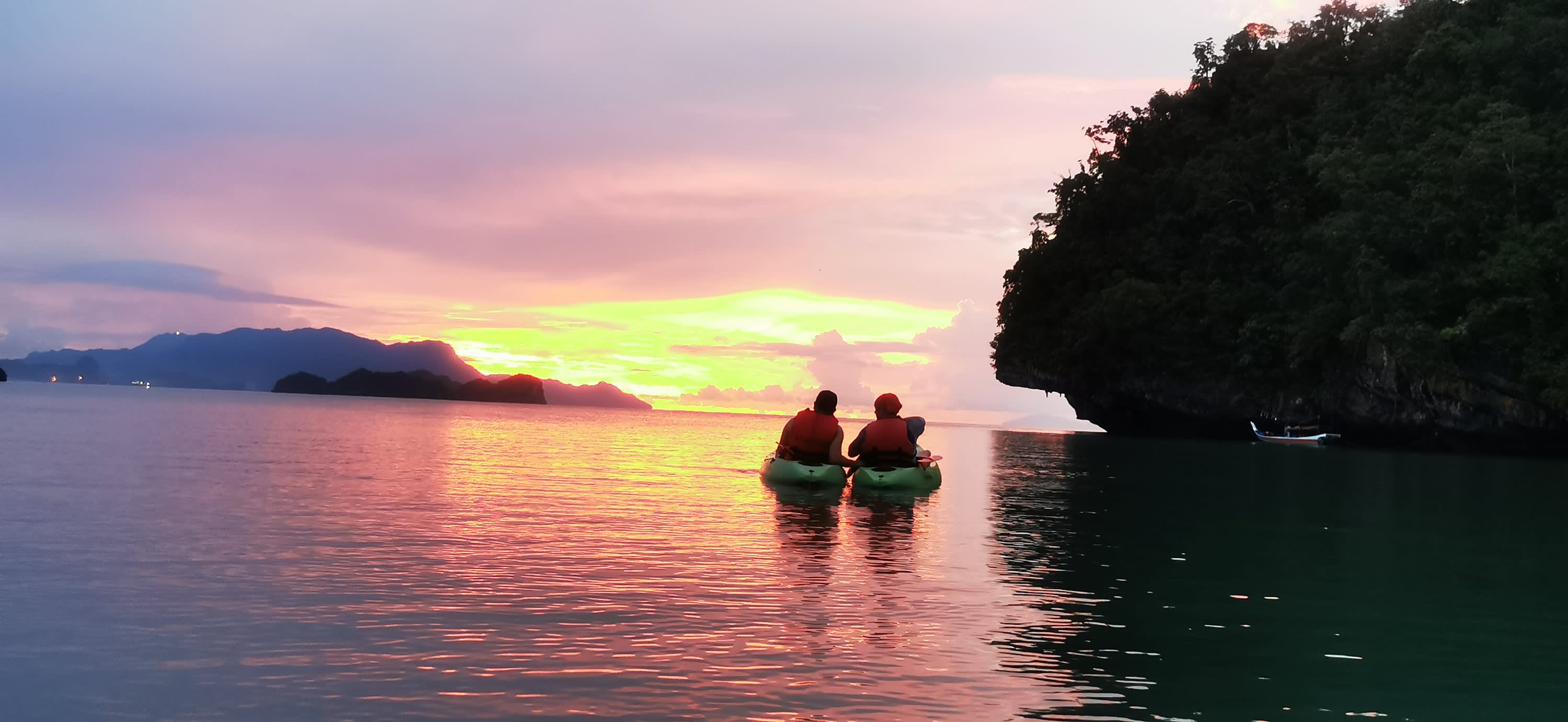 ▶랑카위 선셋 카약 - 이용요건 * 만 4세 이상만 본 액티비티에 참여할 수 있습니다. * 만 0-2세는 무료입니다. - 추가정보 - 규정 및 제한사항 * 액티비티 참여 불가능: 임신부 - 준비물 * 자외선 차단제 / 선글라스 / 수건 - 편의성/접근성 * 유모차 및 휠체어 이용/수용이 불가능합니다.