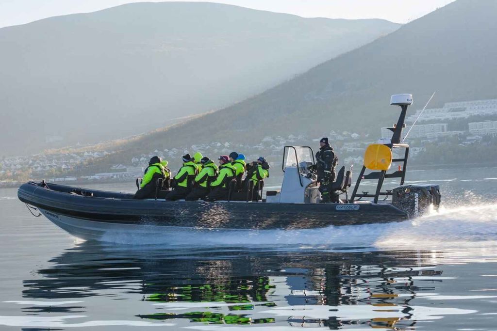 개방형 RIB 보트에서 고래 관찰 모험을 즐겨보세요. 북극의 놀라운 풍경을 감상하며 자연 서식지에서 혹등고래, 긴수염고래, 범고래를 찾아보세요.