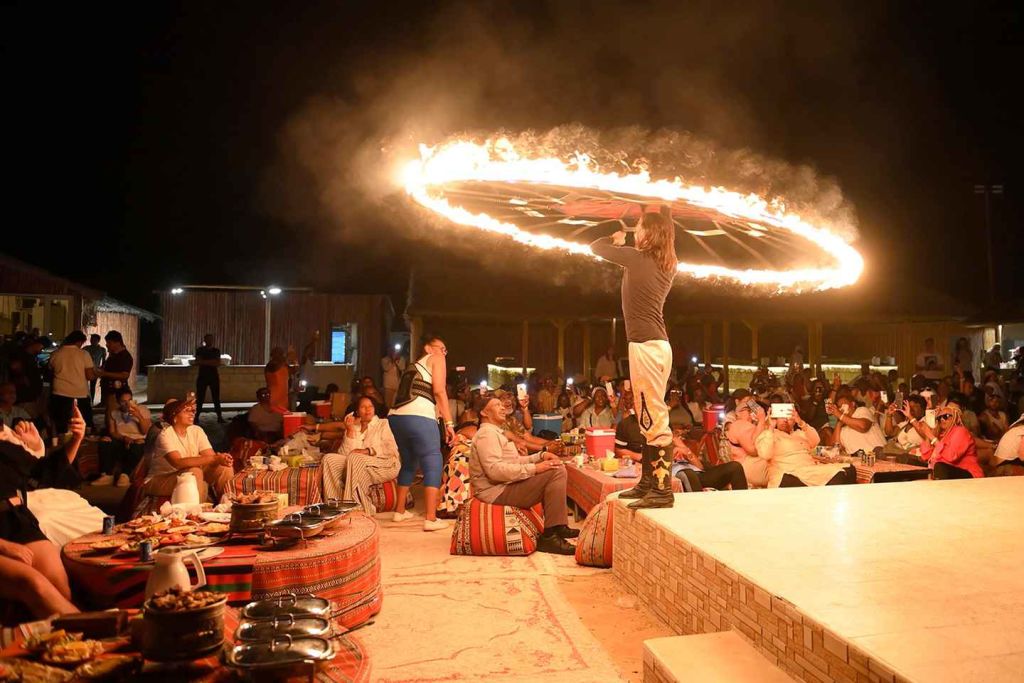 캠프에서는 짧은 낙타 타기, 동양의 전통 헤나 손 장식, 전통, 밸리, 타누라 춤 공연 등을 체험해 보세요. 쿼드 바이킹, 아랍식 커피, 매 사진 촬영은 선택 사항입니다. 이후 원하는 장소로 돌아오세요.