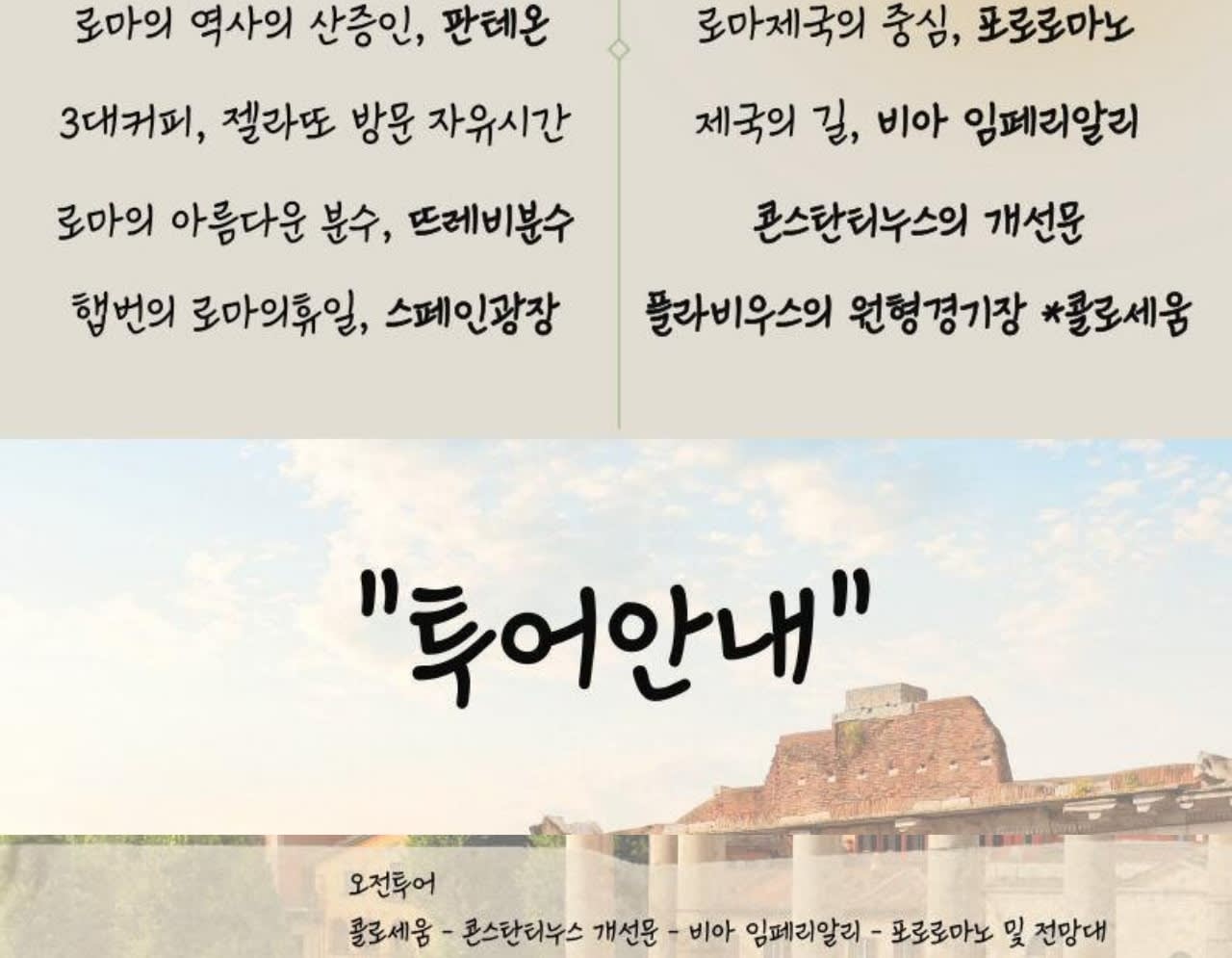 🚩로마시내투어 모든 관광지는 외부관람입니다. 🚩개별 자유시간 후 오후 미팅장소에서 다시 미팅합니다.