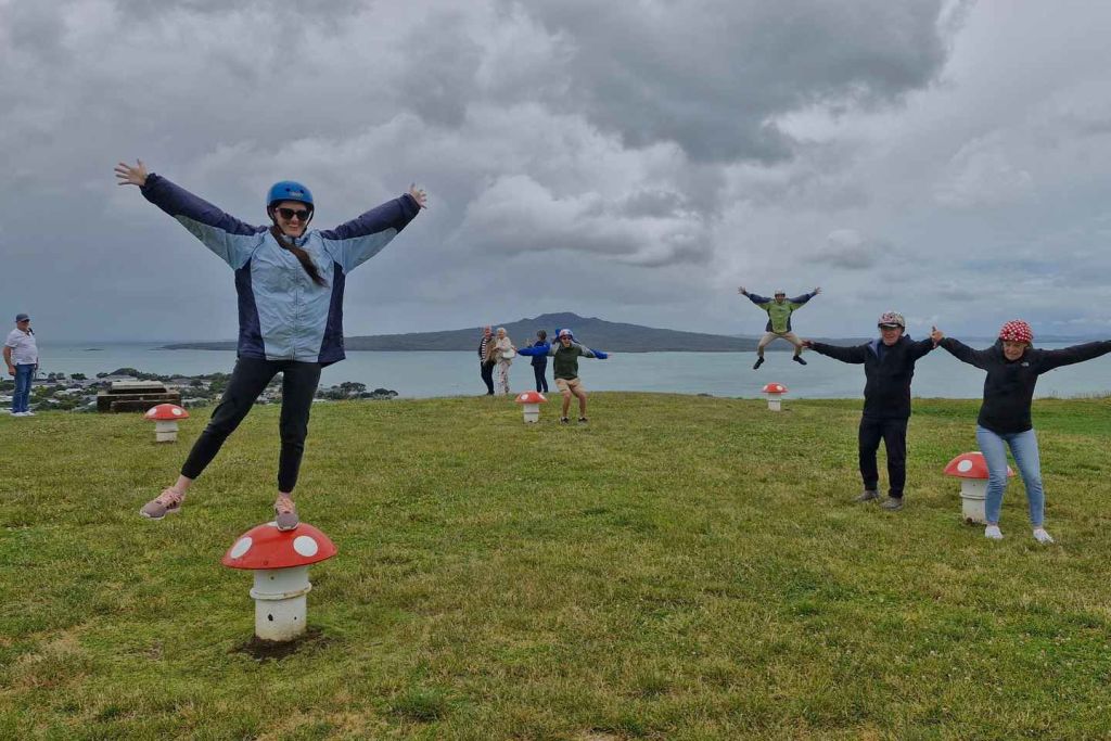 다음은 마을의 뒷골목을 지나 우리 최고의 해변 중 하나와 오클랜드에서 가장 젊은 화산 콘인 랑기토토 섬의 전망을 감상할 수 있는 공원으로 이동합니다.