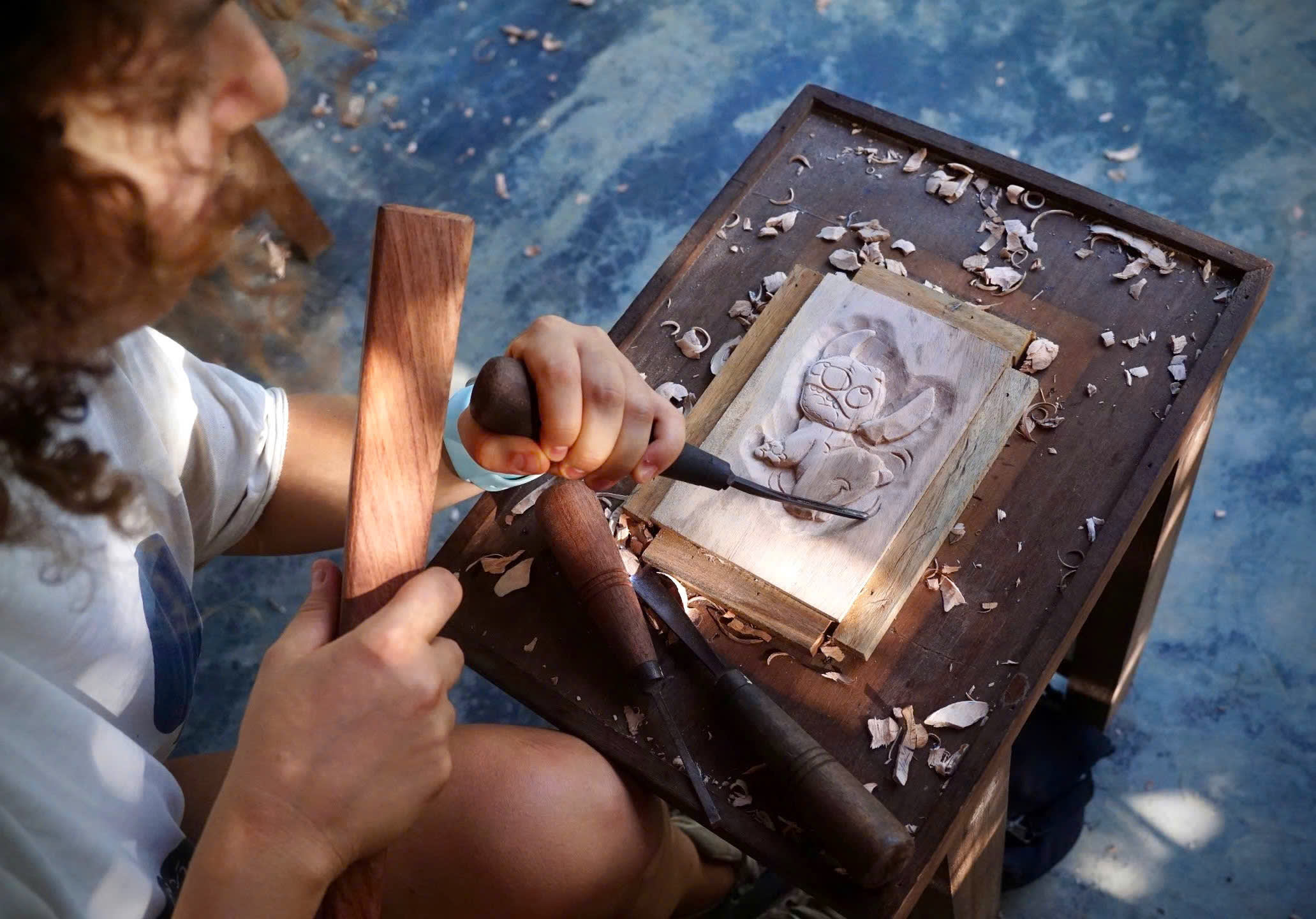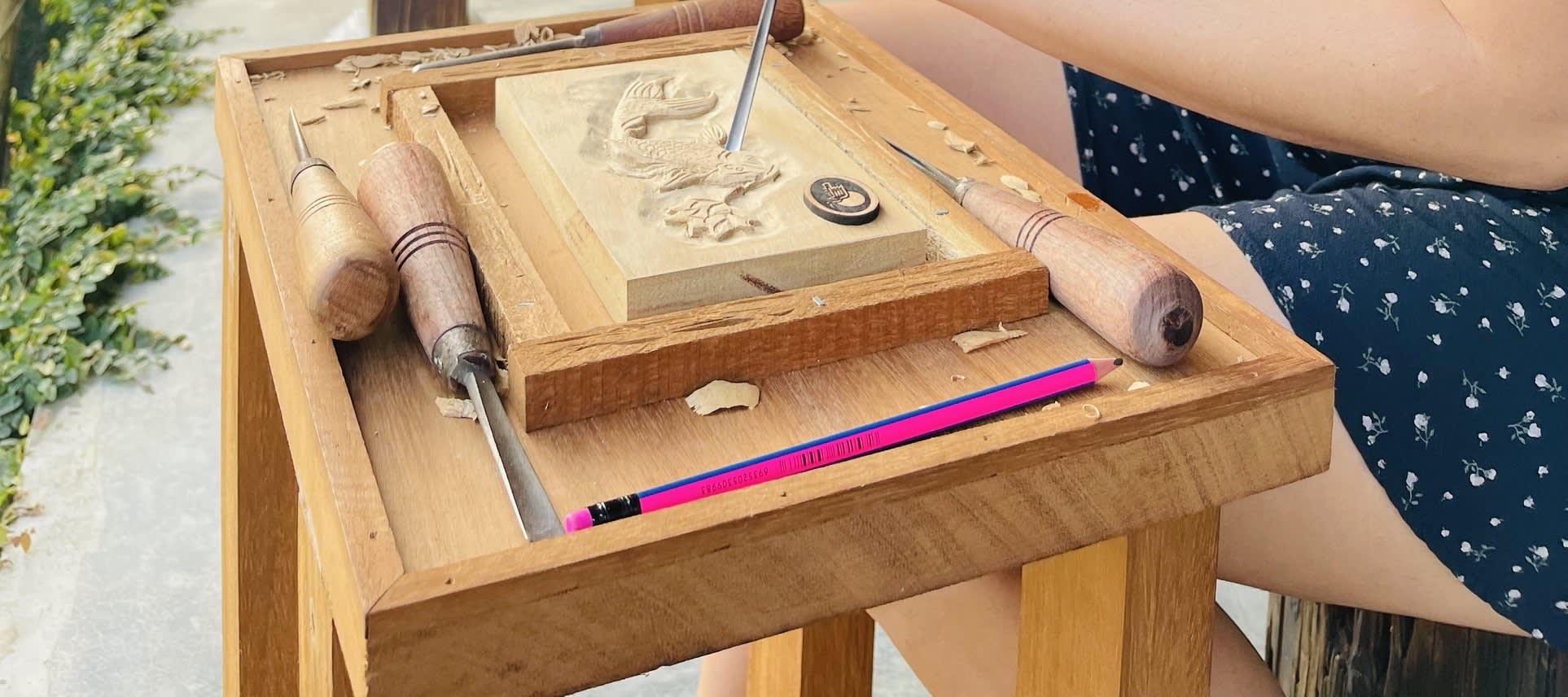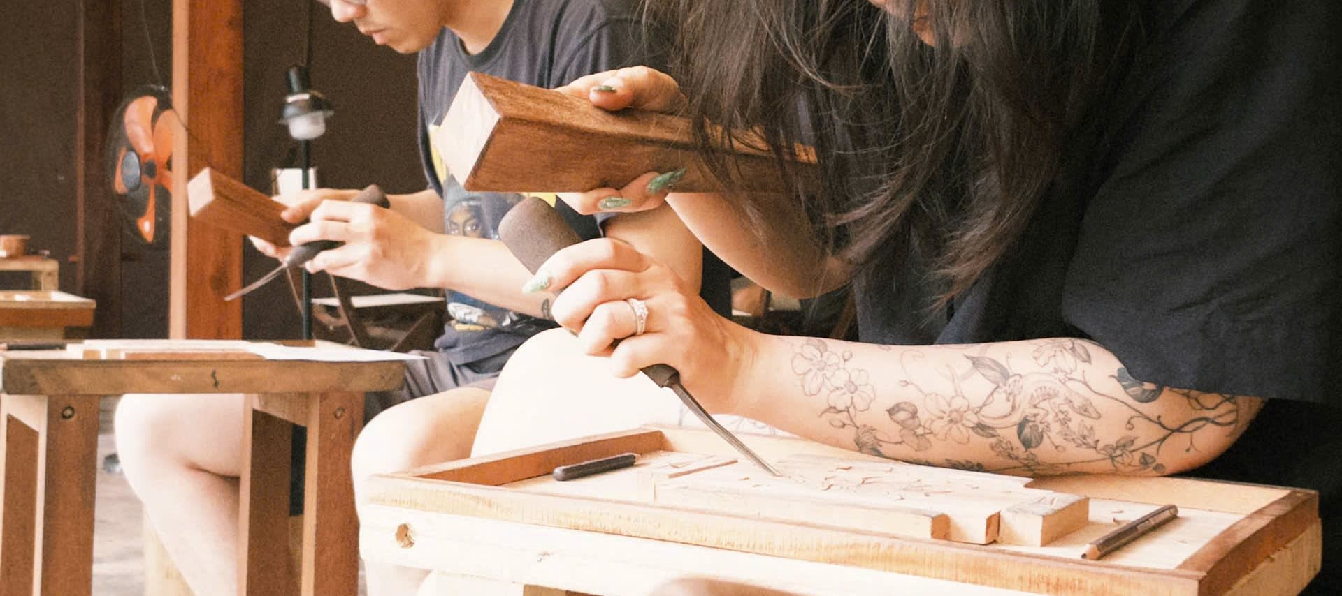 끌을 사용하여 꽃이나 동물을 조형하며, 숙련된 장인과 함께 멋진 액자 아트를 조각해보세요.
