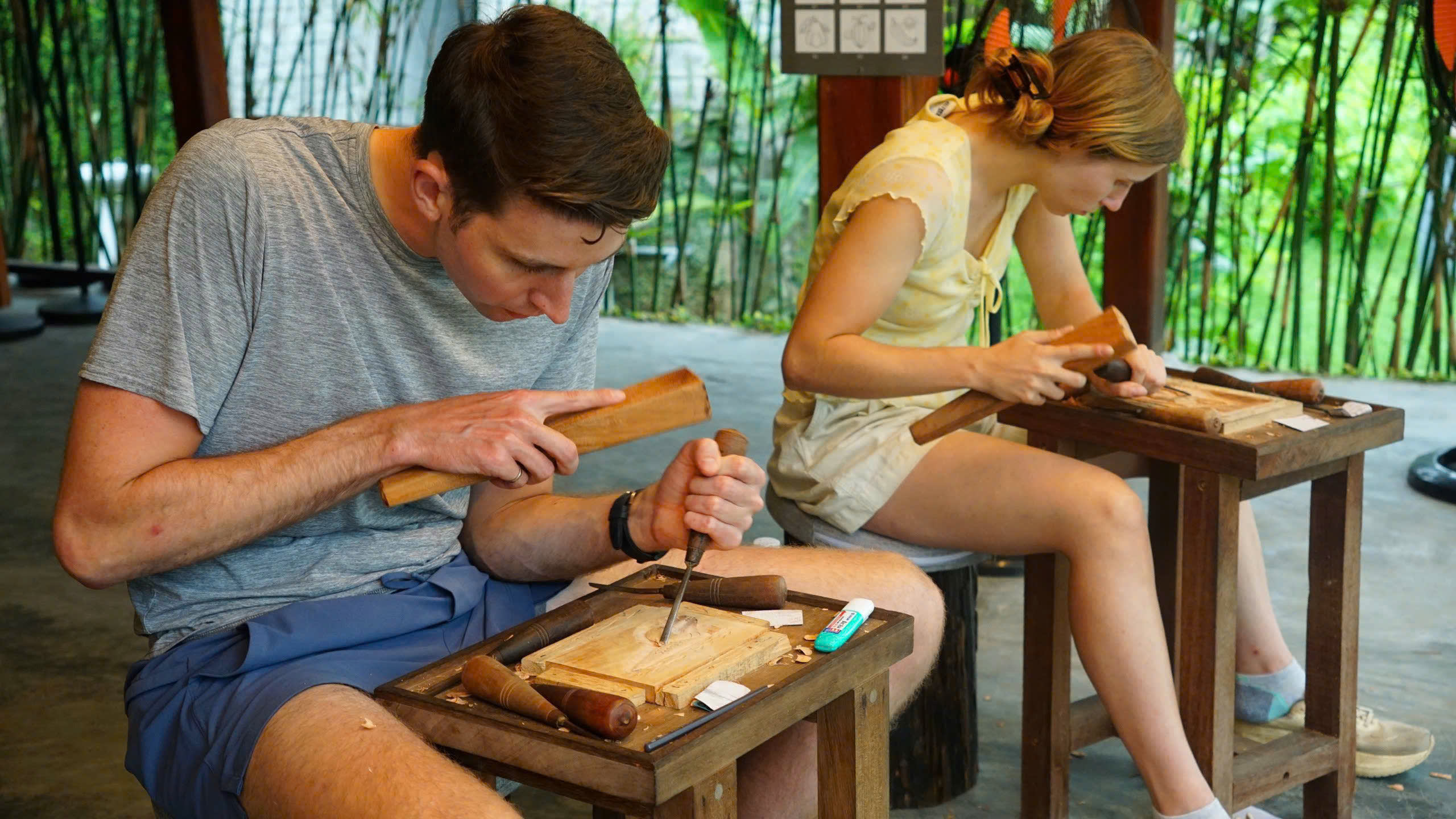 붐비는 인파에서 벗어나 호이안에서 15km 떨어진 숨겨진 평화로운 고노이 마을에서 3시간 동안 나무 조각 수업을 통해 창의력을 발휘해보세요.