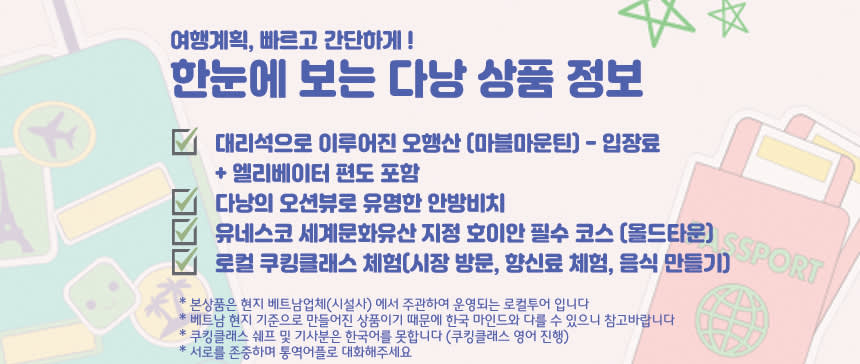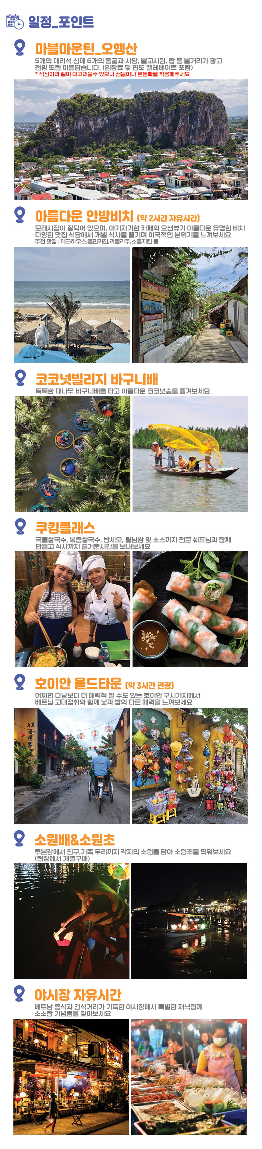 [다낭] 스타인 호이안 종일 투어 (조인투어,바구니배,쿠킹클래스,올드타운,오행산,안방비치)