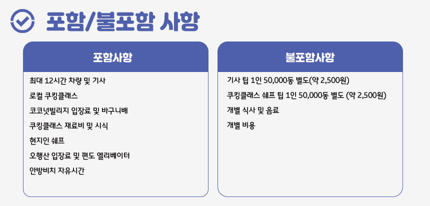 * 베트남 특성상 국공휴일에는 가격이 인상되오니 예약시 추가 안내드립니다 (국공휴일은 매년 일정은 변경될 수 있습니다) * 추가금액 발생시 예약정리시 별도 안내 드립니다 * 천재지변으로 인해 행사가 불가할 수 있으며, 행사 진행 불가 시 개별 안내 드립니다 * 천재지변등의 이유로 시간단축 또는 일정변경시 부분환불이 되지 않습니다 * 픽업은 안내드린 픽업시간 및 장소에 계시지 않거나 5분 이상 늦는 경우 상품 이용이 어렵습니다 * 귀중품은 본인이 보관하시거나 분실에 주의하세요 * 여행자 보험은 개별적으로 반드시 가입하여 주시길 바랍니다 * 본인 건강이 원인인 사고와 (기왕증 등) 본인의 과실로 인해 발생된 사고는 당사가 책임지지 않습니다 * 스타인 월드는 본 자유 여행 상품의 정보 제공을 주관하고 있으며, 실제 행사는 현지 업체를 통해 이뤄집니다