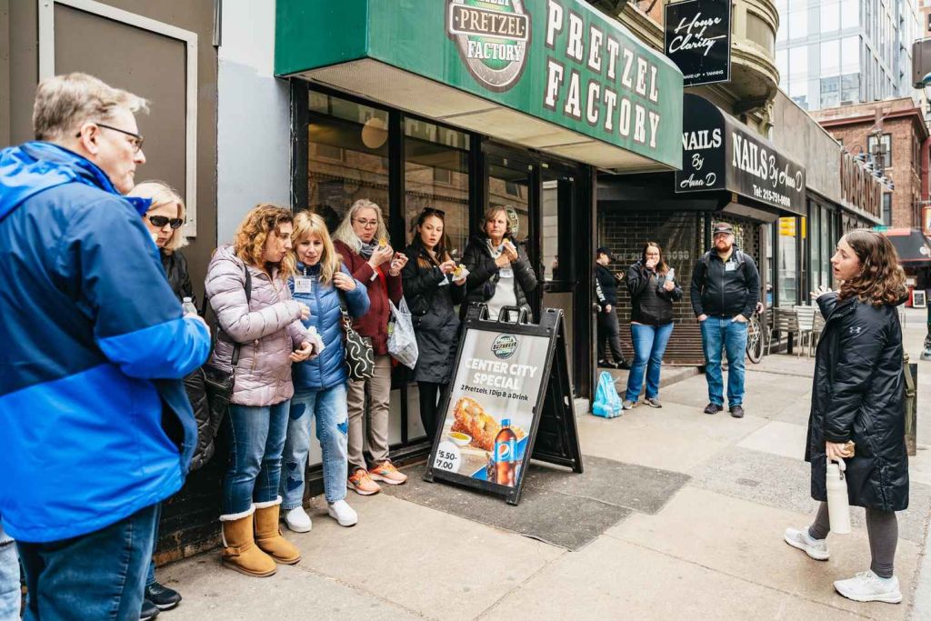 리버티 플레이스에서 가이드를 만나 도시를 가로지르는 미식 모험을 시작하세요. 필라델피아 특유의 소박한 분위기를 느낄 수 있는 소박하고 독립적으로 운영되는 보석 같은 레스토랑을 방문해 보세요. 치즈스테이크, 치즈 위즈 프라이, 토마토 파이, 부드러운 프레즐과 같은 필라델피아의 대표 음식을 맛보세요.