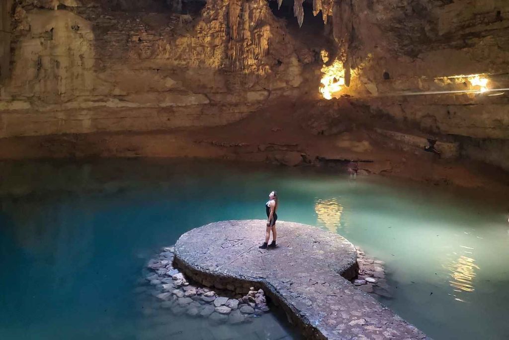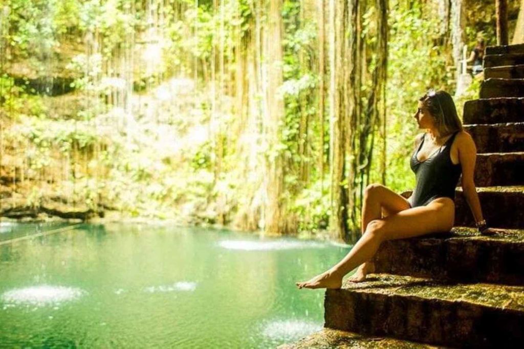 첫 번째 목적지는 마야 역사가 깃든 매혹적인 자연 경관인 세노테익 킬입니다. 무성한 정글 덩굴로 둘러싸인 수정처럼 맑은 바닷물에 뛰어들어 이 신성한 유적지의 평온함에 빠져보세요.