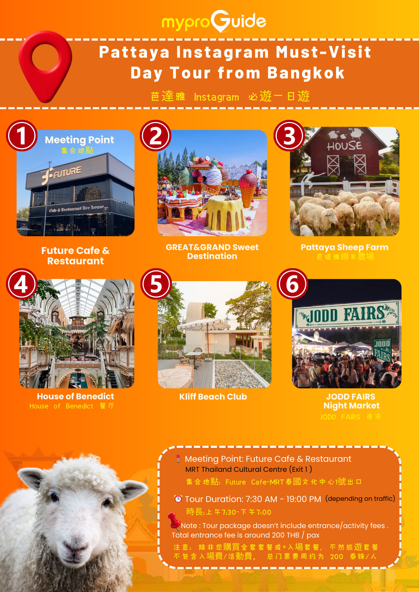 -🎁 무료 선물: 태국 E-SIM! 확인 이메일에서 1GB/1일 무료 데이터 패스를 확인하세요. 다음 제목을 찾아보세요: "【투어 확인】 축하합니다! MyProGuide가 태국 예약을 접수했습니다!" 교환 기한: 2025년 12월 31일. 교환 후 180일 이내에 활성화하여 24시간 동안 데이터를 사용하세요. 제한: 기기당 코드 1개.