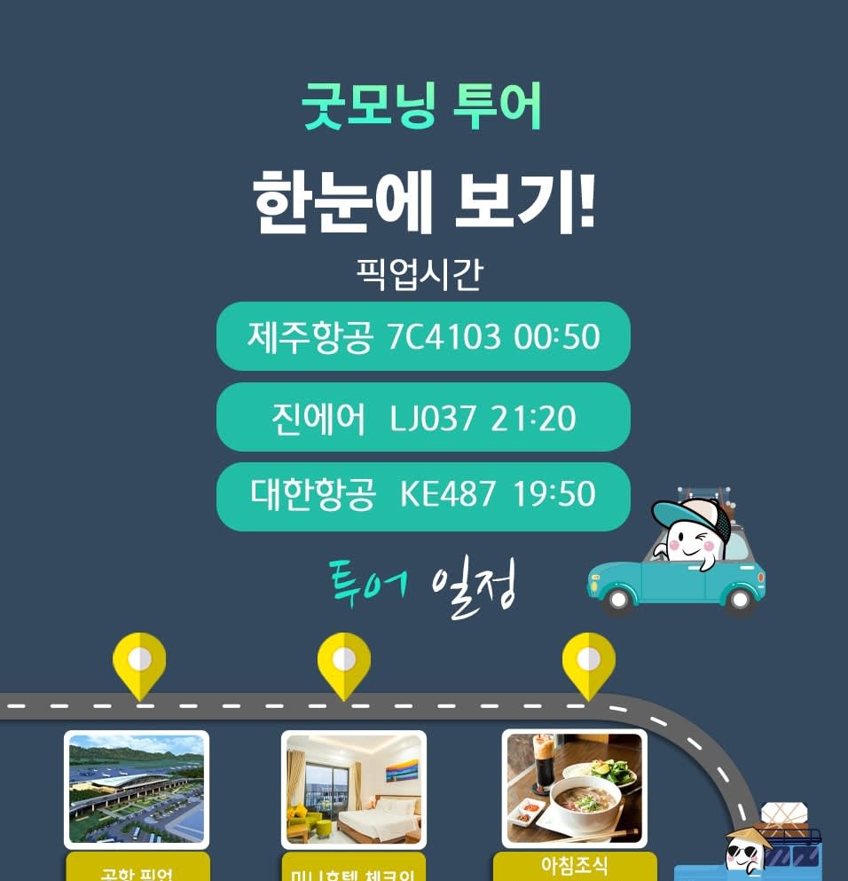 밤늦게 도착하는 비행기, 공항에서부터 걱정이시죠? 😥 제주항공, 진에어, 대한항공타고 푸꾸옥에 새벽에 도착하는 분들을 위해 준비했어요! 늦은 밤 헤매지 않고 편안하게 여행을 시작하고 싶은 분들을 위한 푸꾸옥 굿모닝 투어! ✨ 공항 픽업부터 호텔 꿀잠, 알찬 시내 투어까지, 첫날을 완벽하게 만들어 드릴게요! ✈️💖
